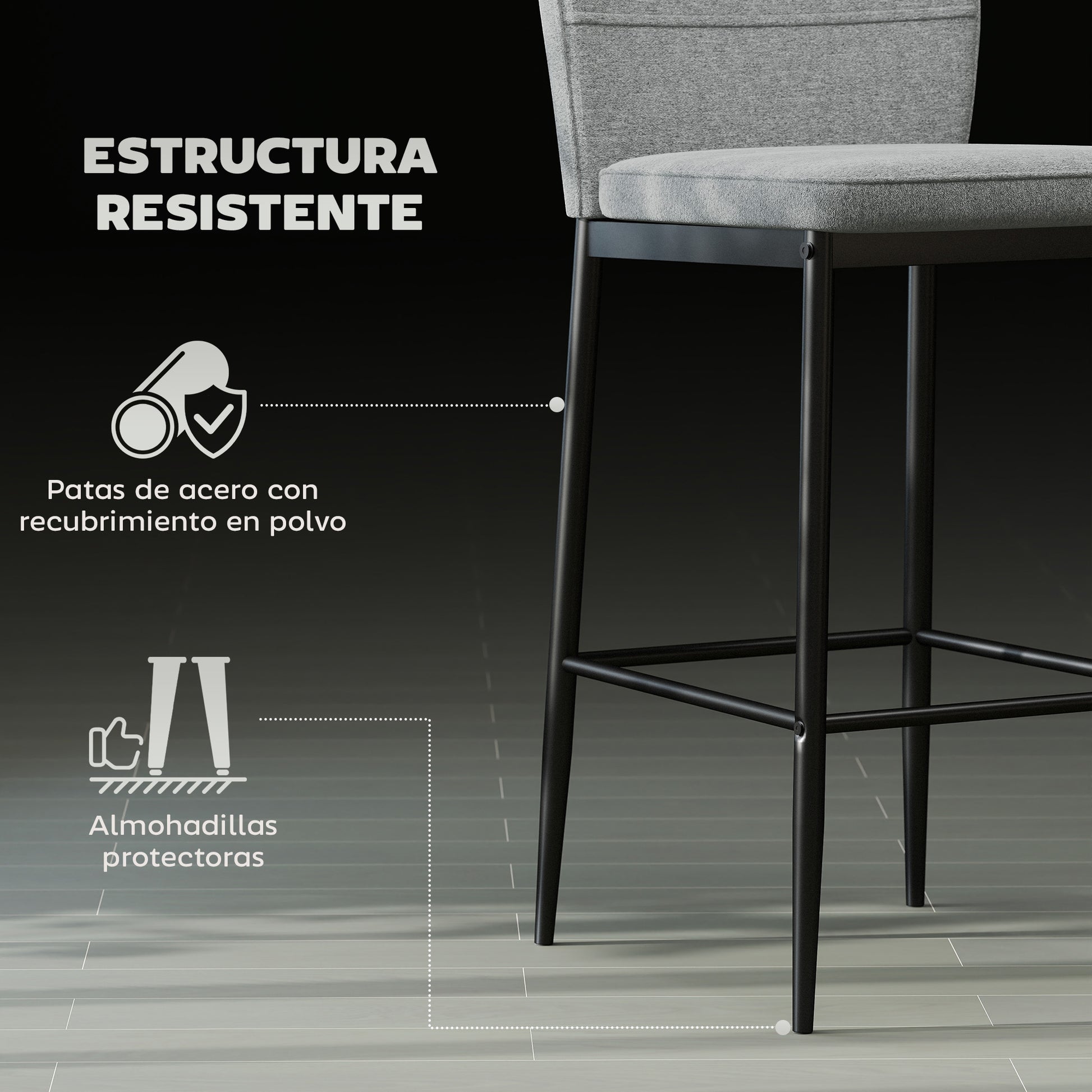 HOMCOM 2er Set Barhocker - Hohe Küchenhocker mit Rückenlehne und Fußstütze, gepolstert in Samt, Stahlrahmen, moderne hohe Hocker für den Essbereich, Grau
