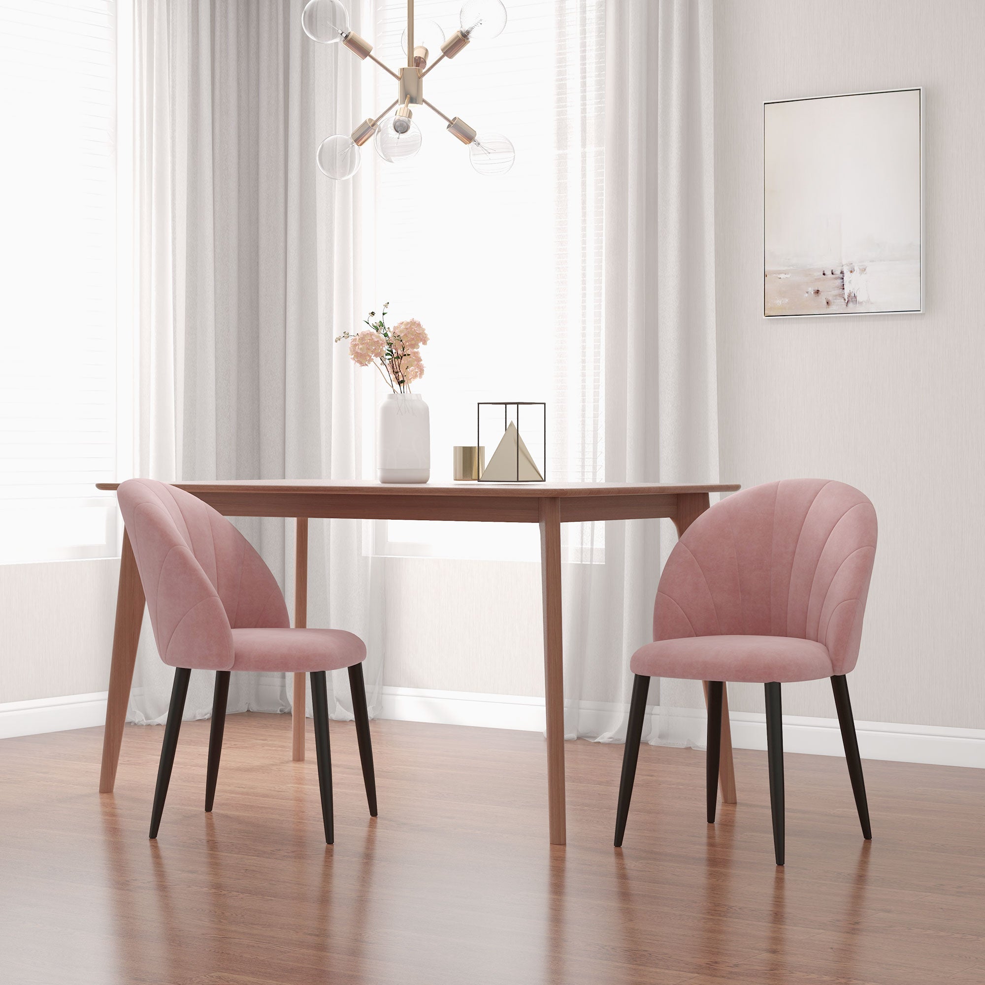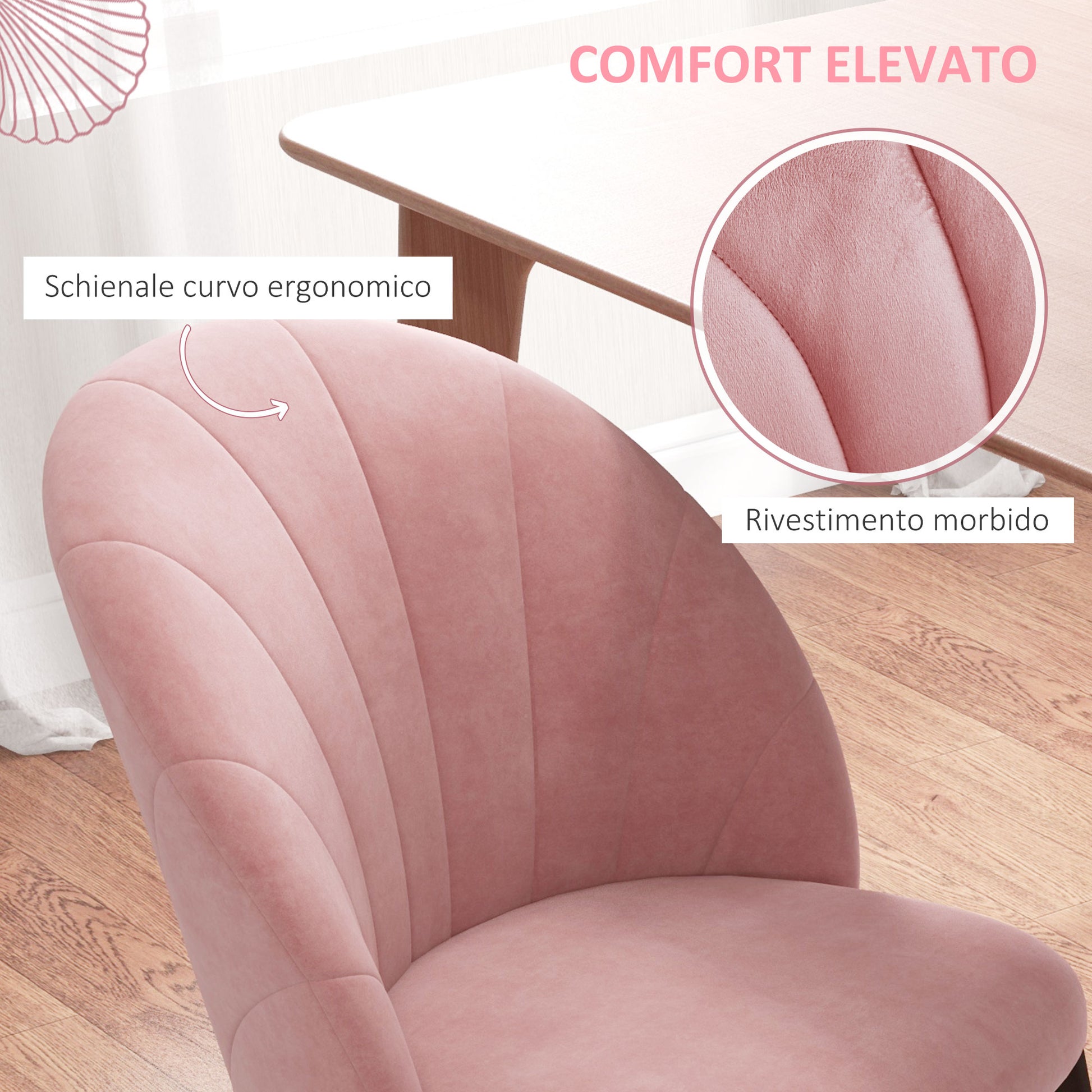 HOMCOM Set aus 2 Esszimmerstühlen, moderne Küchenstühle mit Muschelrückenlehne und Metallbeinen, gepolsterter Samtstuhl für Küche, Schlafzimmer, Büro und Wohnzimmer, Rosa