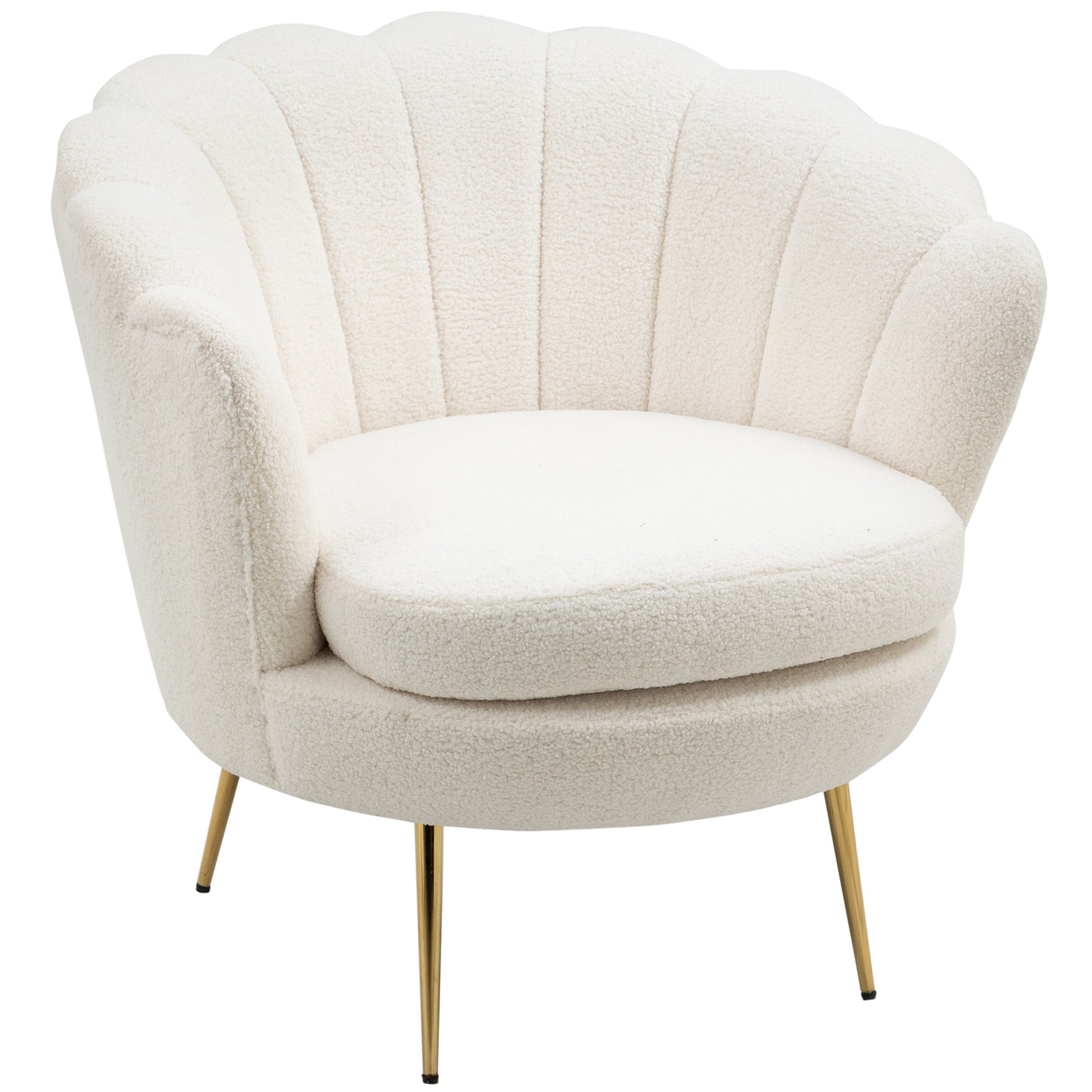 HOMCOM Polstersessel in Muschelform, Sessel Relaxsessel mit Metallbeinen, Schminkstuhl mit Fleeceoptik, für Schlafzimmer Wohnzimmer, Weiß