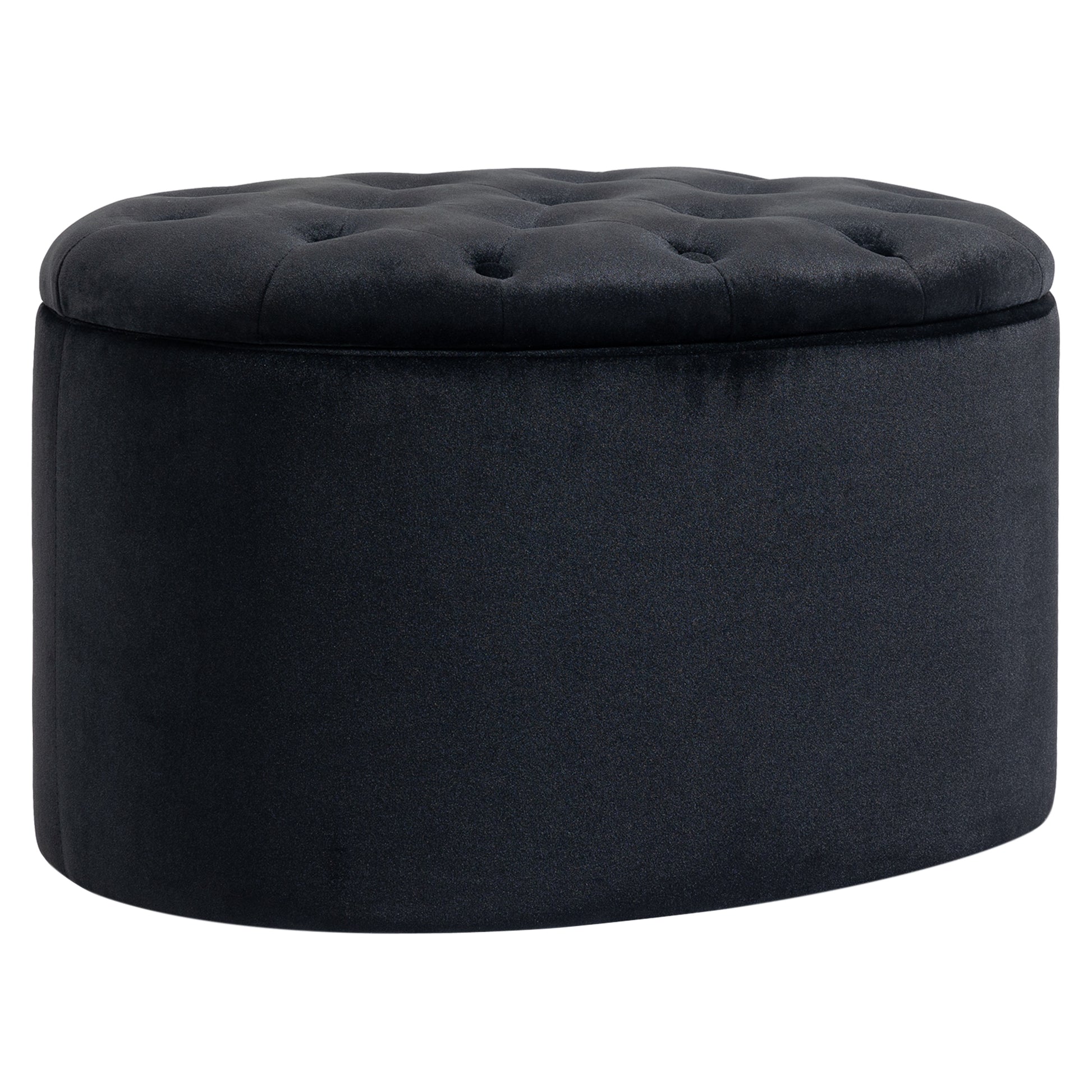 - - Elegant design: Add some glamour to your home with our storage ottoman. Its oval shape and button-tufted details make a striking statement in any home.