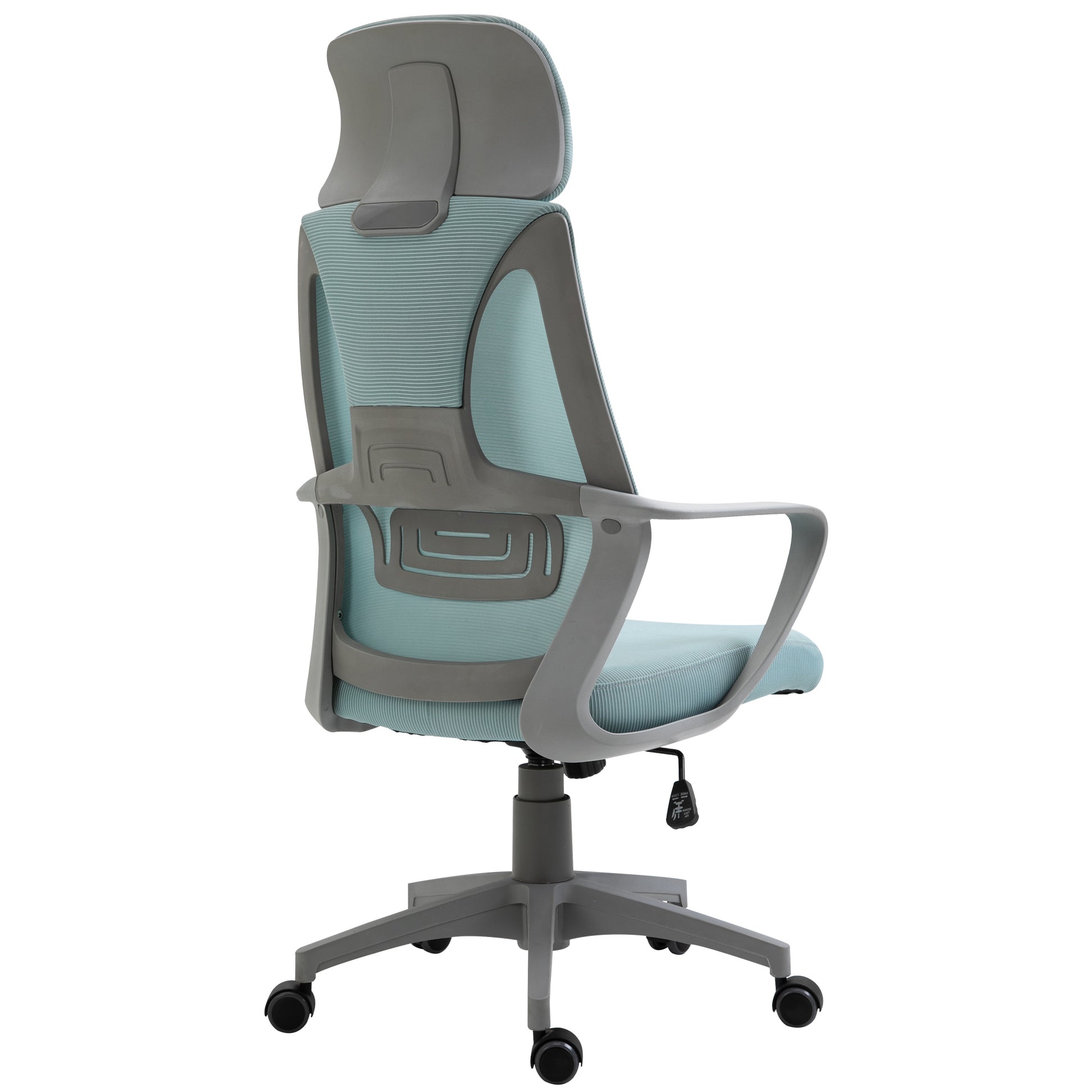 Vinsetto Büro Stuhl Drehstuhl höhenverstellbar mit Rückenlehne Armlehnen Kopfstütze Rollen und Wippfunktion Belastung 120 kg 64x55x116-126 cm Blau