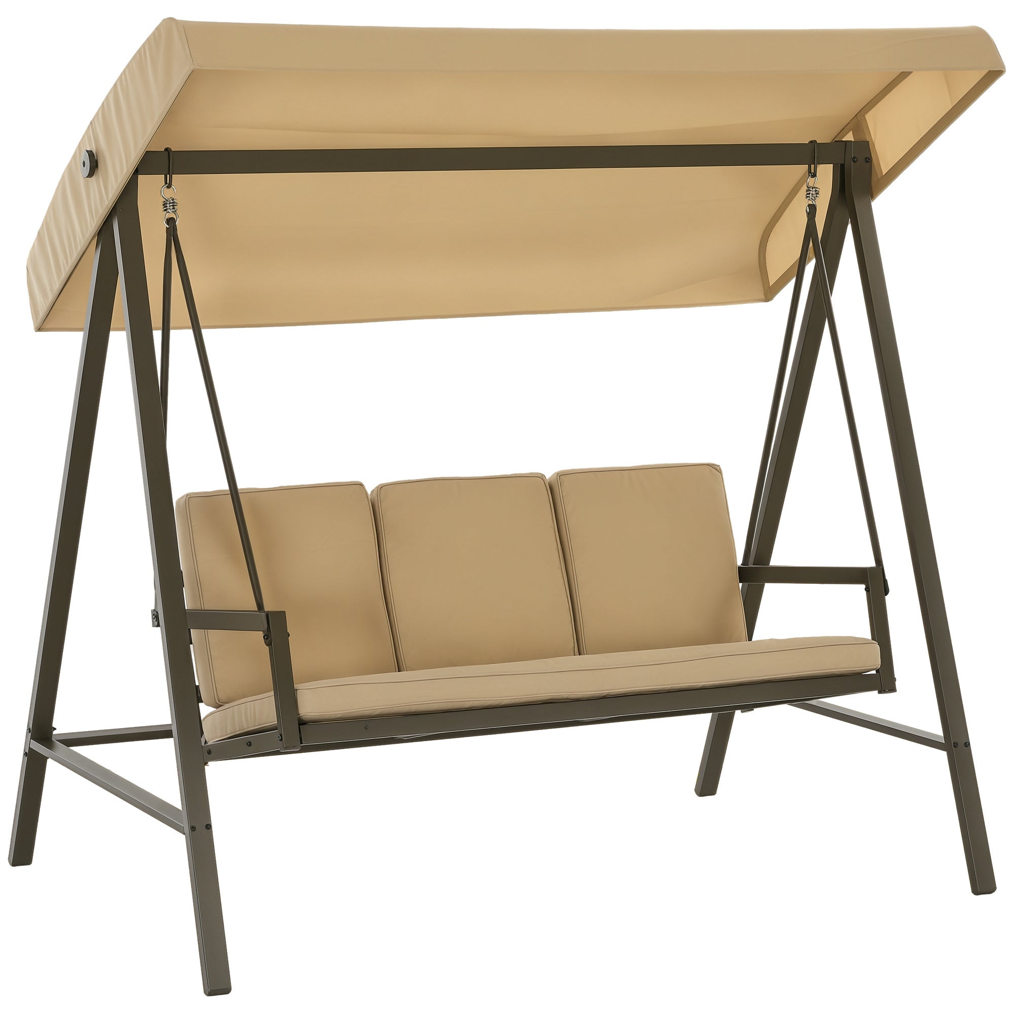Swing Outsunny Hollywood 3-θέσιος με Ρυθμιζόμενη Μονοκόμματη Κάλυψη και Μαξιλάρι Πλάτης, Κήπος Swing έως 360 kg Φορτίο, Μπεζ, 200 x 125 x 175 cm
