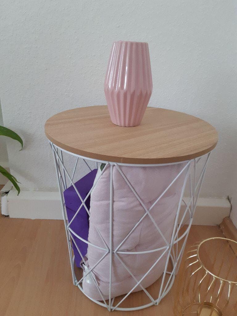 - - ELEGANT ΣΧΕΔΙΑΣΜΟΣ: Λευκό τραπέζι πλευράς με ξύλινη επιφάνεια, ιδανικό για το καθιστικό. Το τραπέζι πλευράς είναι πρακτικό καλάθι και τραπέζι πλευράς σε ένα.