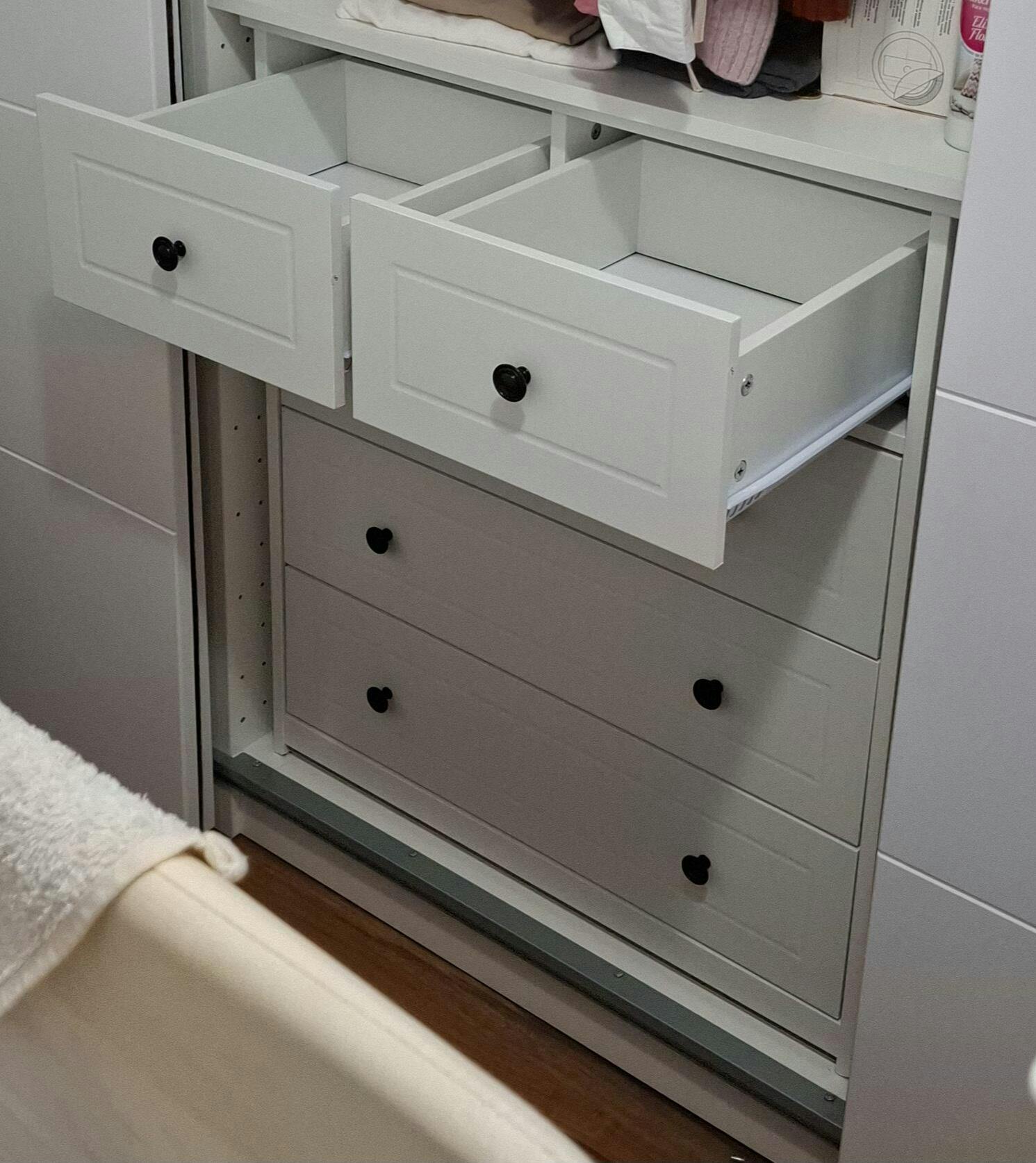 - - ΣΆΦΑΝΟΣ ΚΑΙ ΜΟΝΤΕΡΝΟΣ: Η κατασκευή αυτού του μύλου υπνοδωματίου είναι φτιαγμένη από MDF και μελαμίνη ξύλου, διασφαλίζοντας τη διάρκεια και την αντοχή του. Επιπλέον, ο σχεδιασμός του μπροστινού μέρους των συρταριών ξεχωρίζει για τη μικρή διακόσμηση, μια λεπτομέρεια που προσθέτει μια πινελιά κλασικού και σύγχρονου στυλ. Οι κομψές μαύρες λαβές συμπληρώνουν την κομψή εμφάνιση αυτού του λευκού μύλου