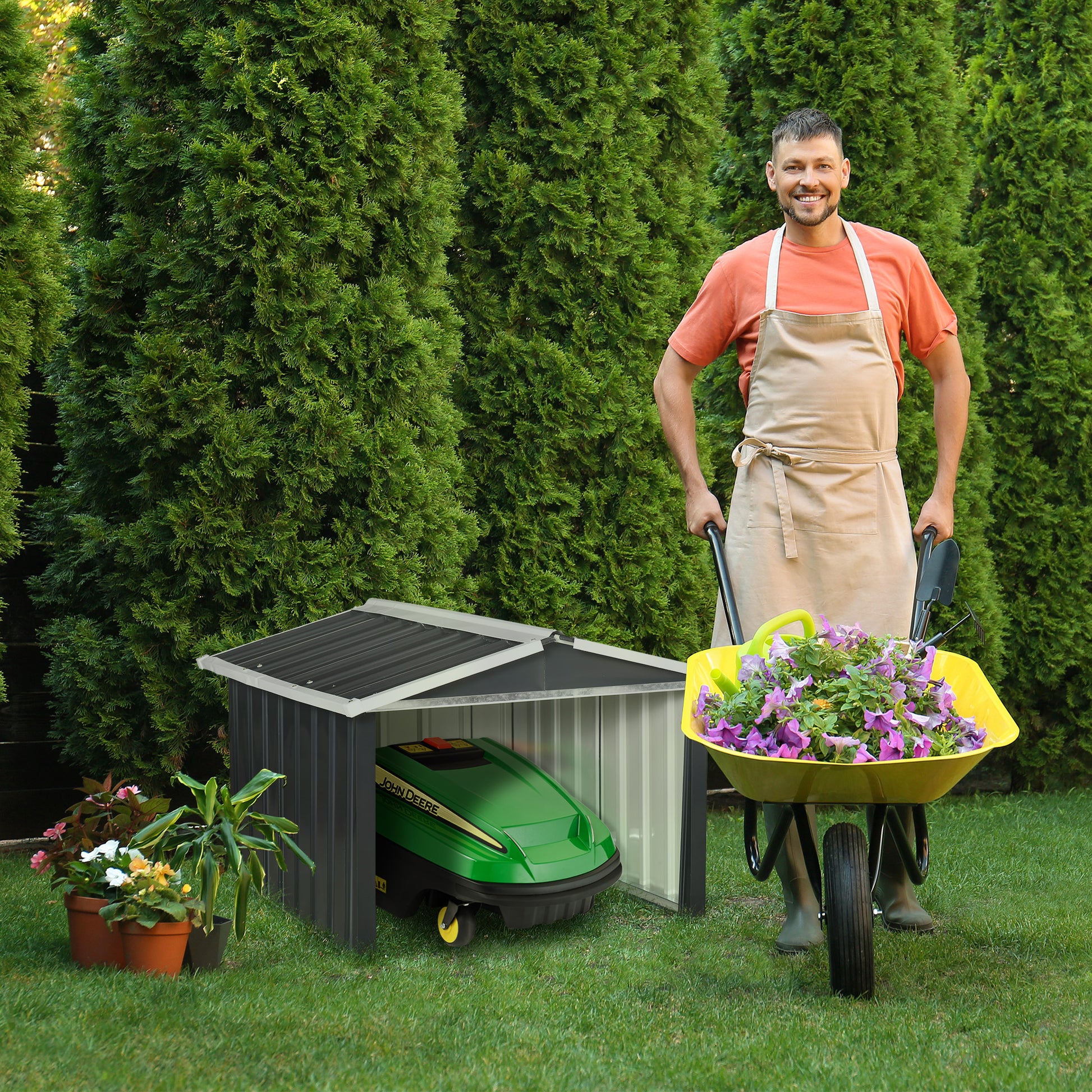 - - ΣΧΕΔΙΑΣΗ: γκαράζ για ρομποτική χλοοκοπτική μηχανή σε σχήμα μίνι διπλής κλίσης κήπου, ιδανικό για να προσθέσει μία νότα πρωτοτυπίας στον κήπο σας