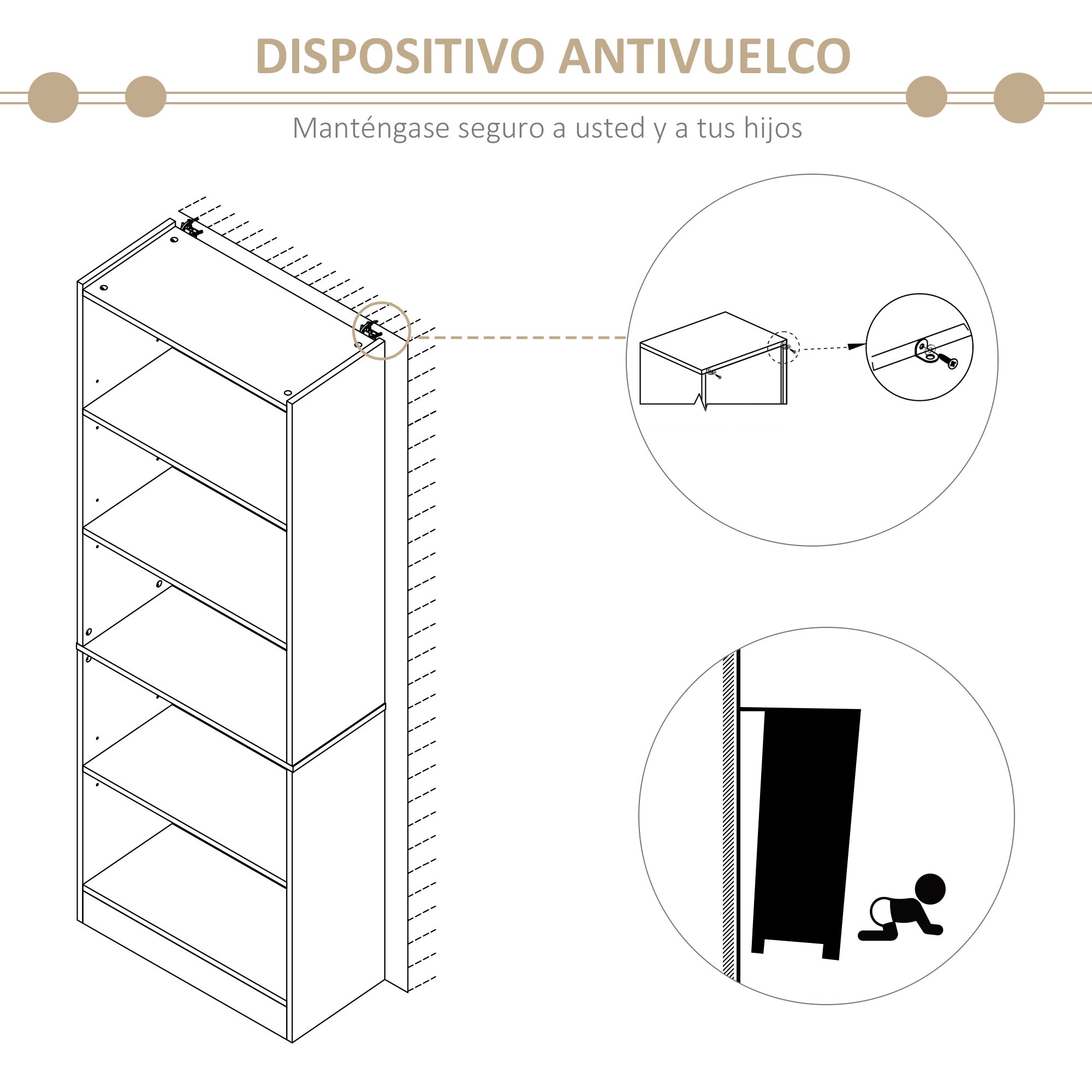 HOMCOM Βιβλιοθήκη 5 Επιπέδων με 3 Ρυθμιζόμενα Ράφια - Αντιγυριστική Αποθήκευση για Σαλόνι, Γραφείο, Μελέτη 63x29.5x176 εκ Φυσικό Ξύλο