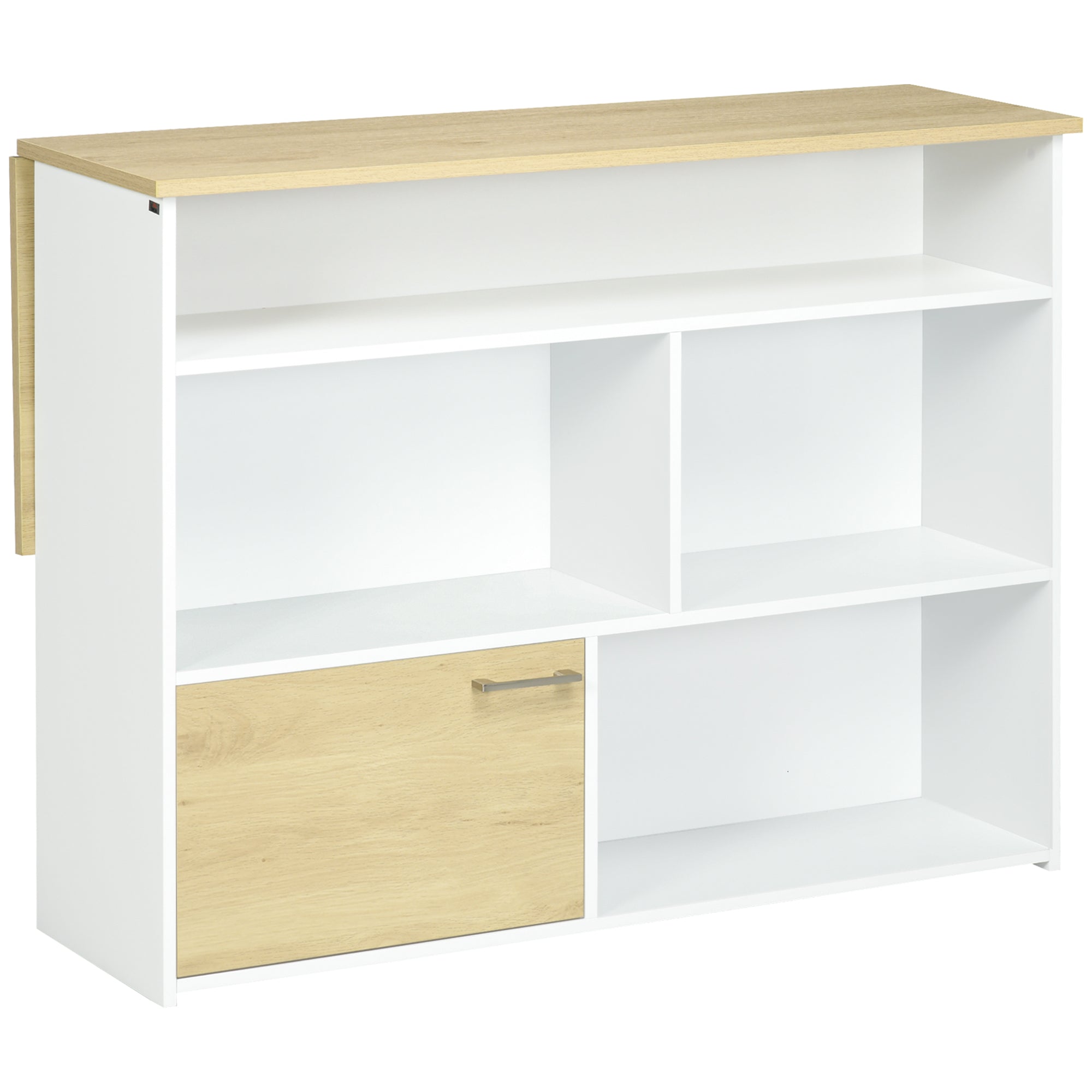 HOMCOM Επεκτείνοντας Μπαρ Τραπέζι με Αναδιπλούμενο Φτερό και Αποθηκευτικούς Χώρους και 1 Πόρτα για την Κουζίνα και την Τραπεζαρία 116x79.5x91 εκ. Λευκό