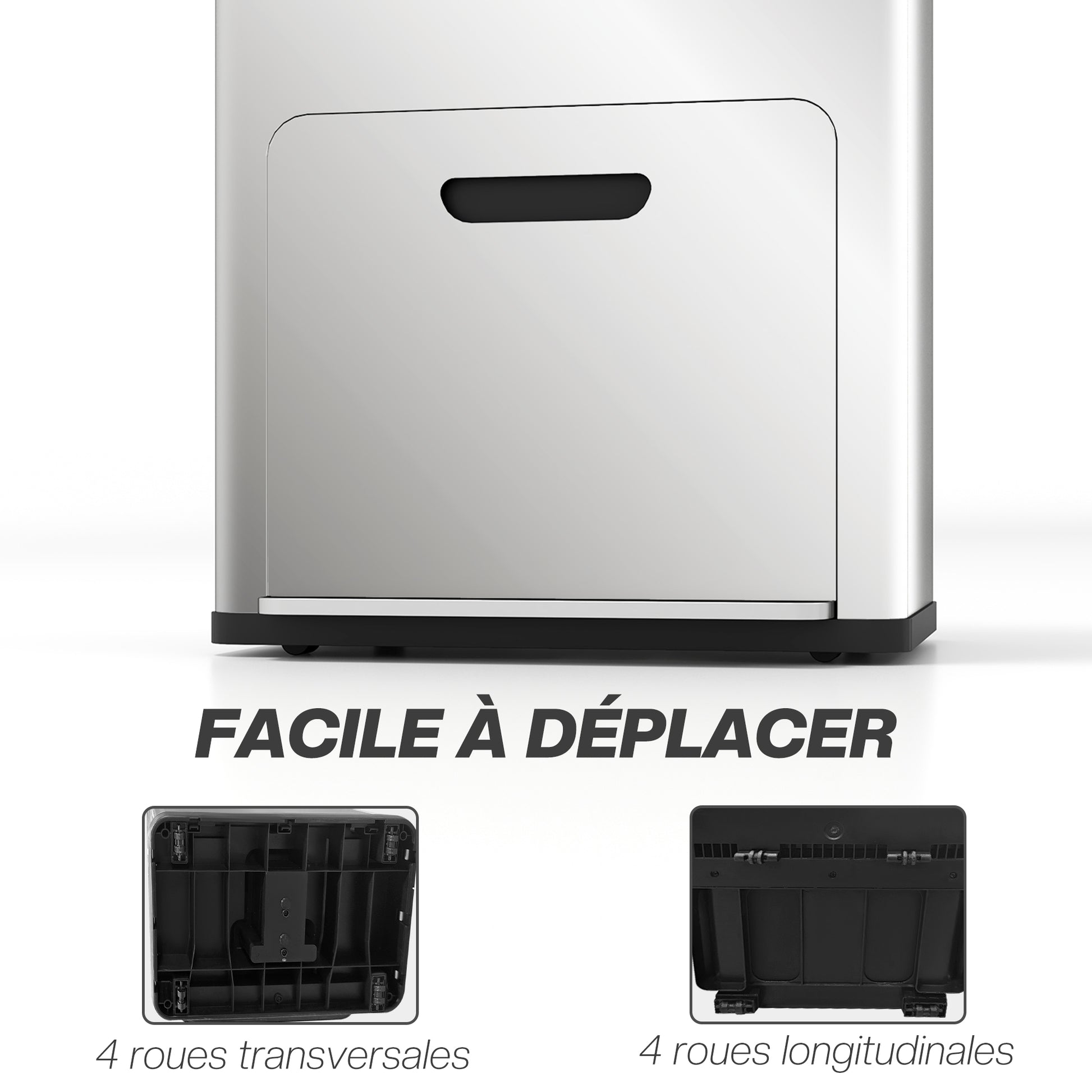 HOMCOM Κάδος Ανακύκλωσης 56L με Ρόδες, 3 Διαμερίσματα, Απαλή Κλεισίματα, Ευρέα Πεντάλ, Ανθεκτικός σε Δακτυλικά Αποτυπώματα & Οσμές Ασημί