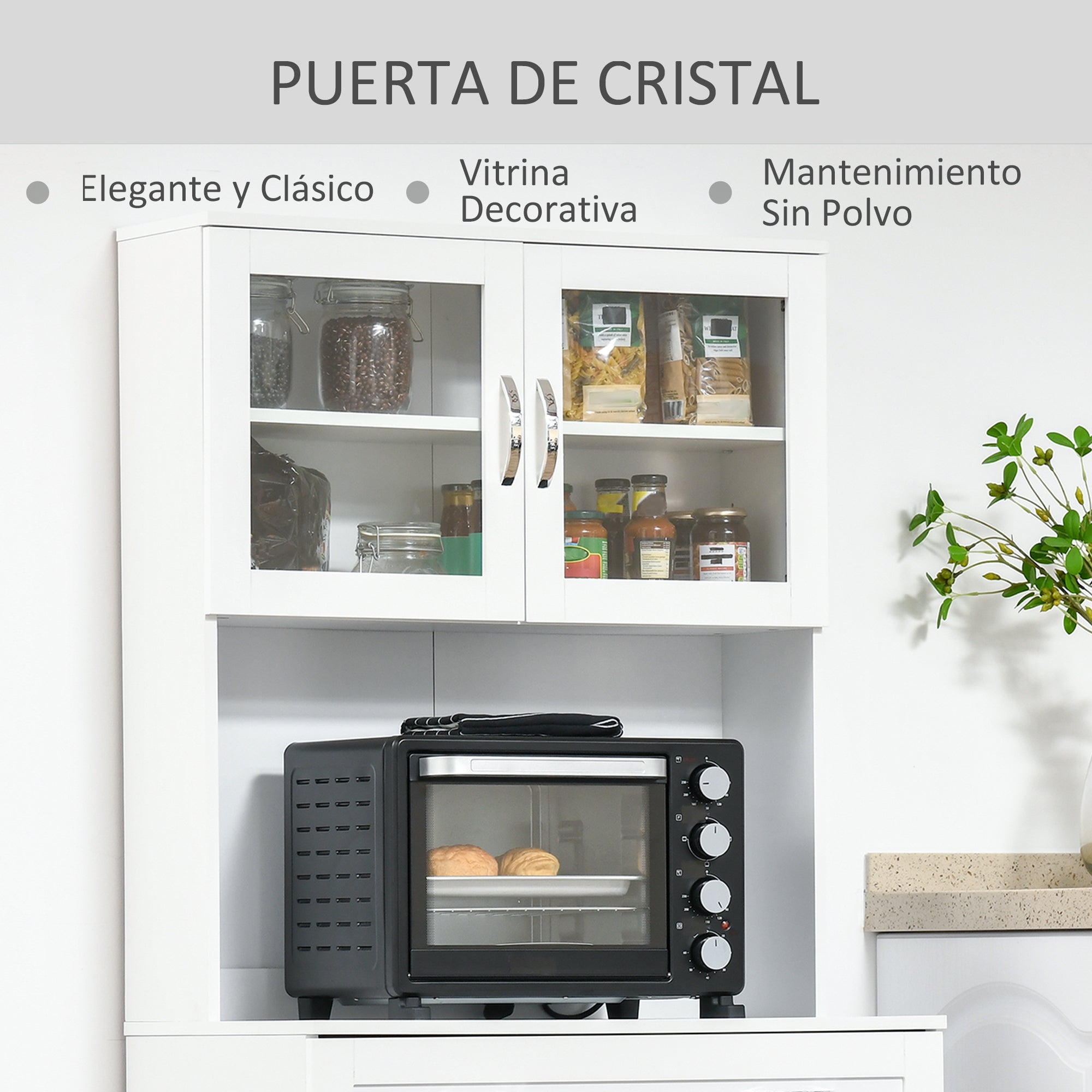 - - 2 ΓΥΑΛΙΝΕΣ ΠΟΡΤΕΣ: 2 κορνιζαρισμένες γυάλινες πόρτες προσθέτουν κομψότητα στο σχέδιο της κουζίνας σας, επιτρέποντάς σας να εκθέτετε τα σκεύη σας ή άλλα πολύτιμα αντικείμενα και να τα κρατάτε ελεύθερα από σκόνη.