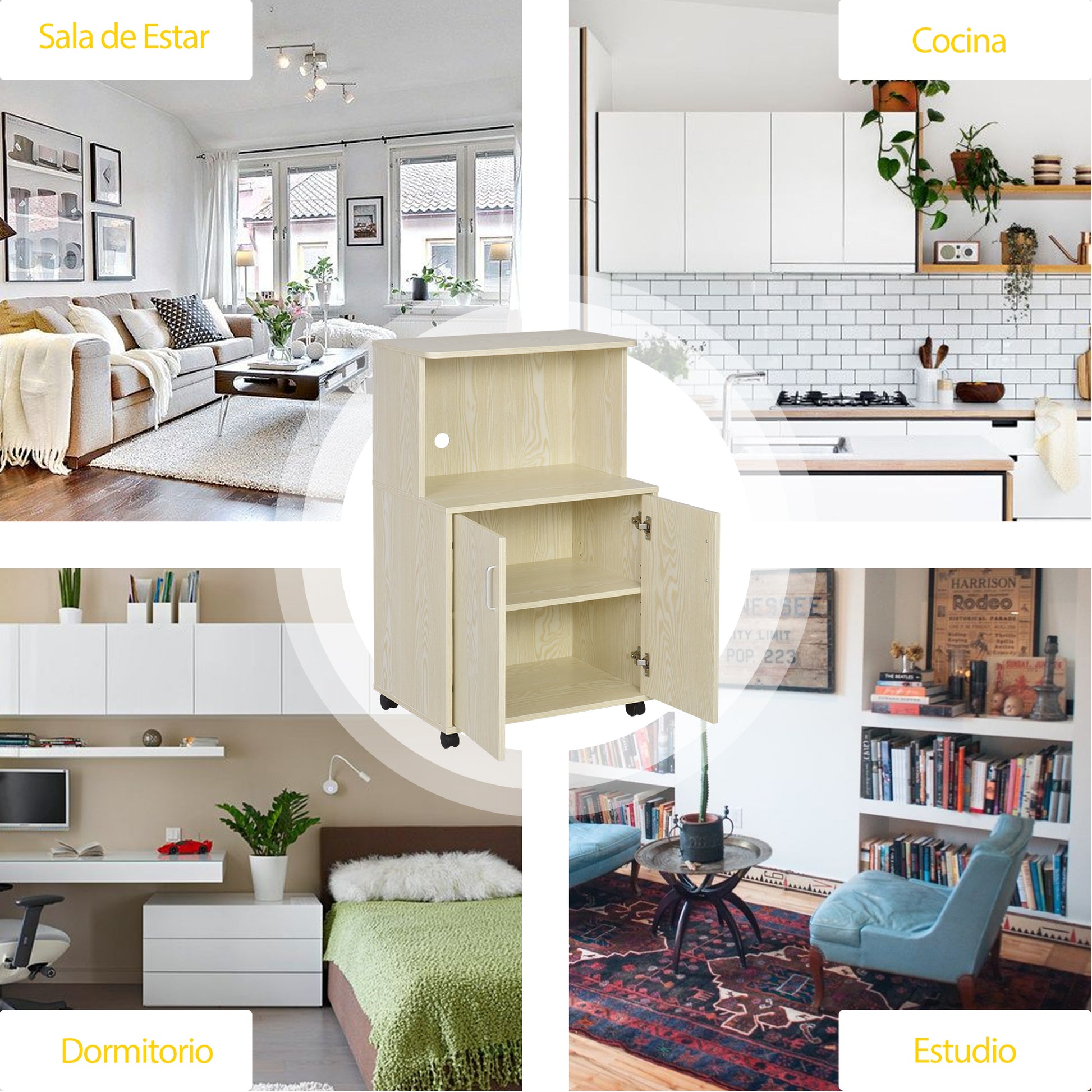 - - ΧΩΡΩΤΟ: Διαθέτει αρκετό χώρο για να κρατάτε τα πάντα οργανωμένα και τακτοποιημένα. Έχει ένα επάνω ράφι και ένα ντουλάπι με πόρτες και ρυθμιζόμενο κεντρικό ράφι. Η ευρύχωρη επιφάνεια του είναι ιδανική για την τοποθέτηση του μικροκυμάτων, τοστιέρας ή ακόμα και ενός εκτυπωτή.