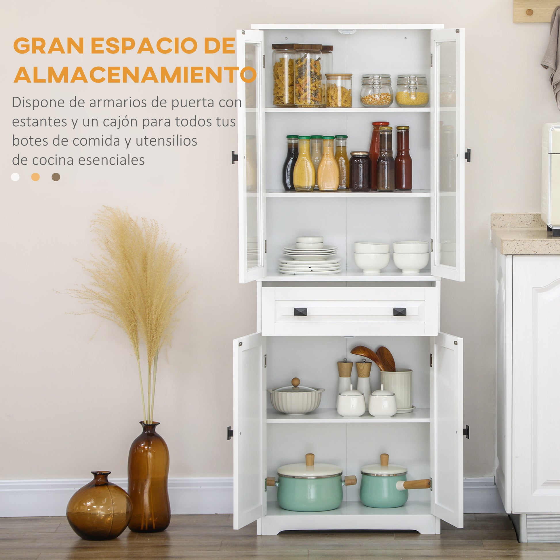HOMCOM Ντουλάπι Παντοθήκης με 4 Πόρτες, 1 Συρτάρι και 2 Ρυθμιζόμενα Ράφια για Σαλονάκι 60x30x160 εκ Λευκό