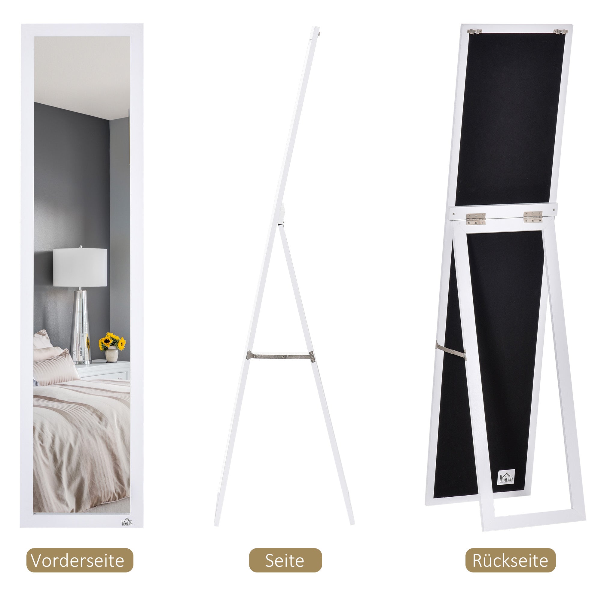 - - Διπλή λειτουργία: Χρησιμοποιήστε τον ως ελεύθερο ολόσωμο καθρέπτη με στήριγμα ή για τοποθέτηση στον τοίχο. Η ευελιξία αυτού του ψηλού καθρέπτη ταιριάζει άνετα στον χώρο σας.