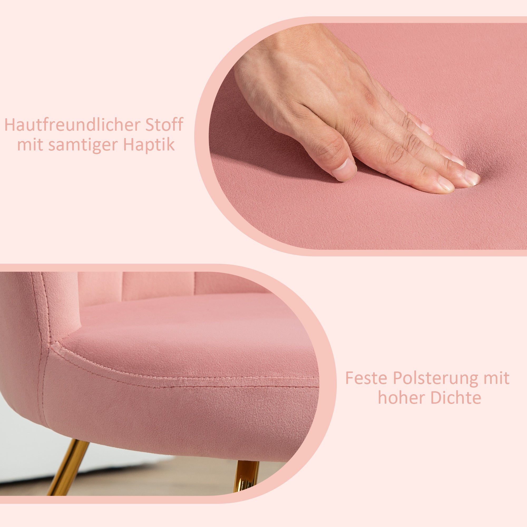 HOMCOM Πολυθρόνα Καθιστικού με Υποβραχιόνια, Μεταλλικά Πόδια, Πολυθρόνα Χαλάρωσης με Πλάτη Σχεδίου Λωτού, Βελούδινη Όψη, Επενδεδυμένη Πολυθρόνα για Σαλόνι, Υπνοδωμάτιο Ροζ