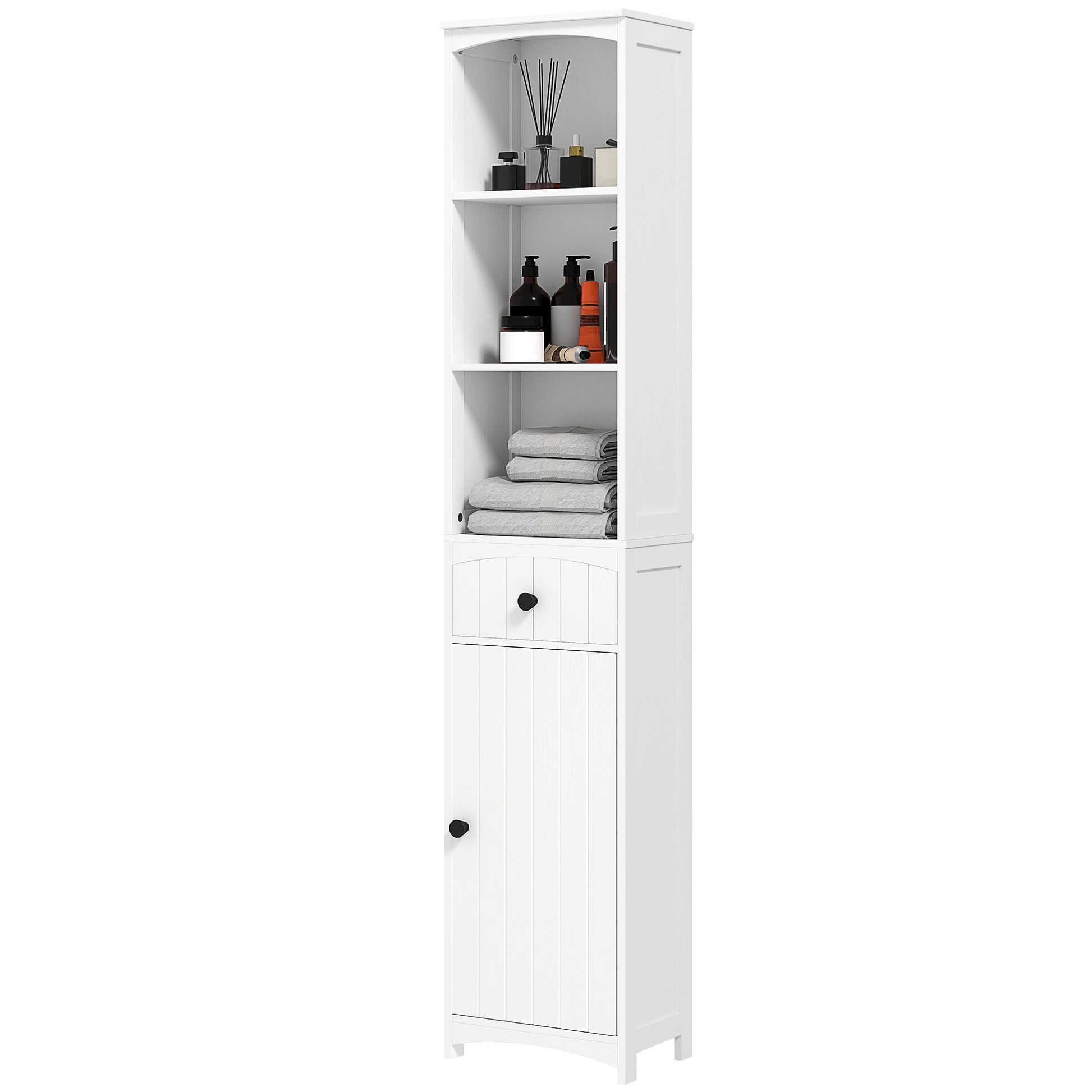 HOMCOM Υψηλό Ντουλάπι Μπάνιου με 3 Ράφια και 1 Συρτάρι, Αποθηκευτικό Ντουλάπι για Μπάνιο, Καθιστικό Λευκό, 34x24x170.5εκ