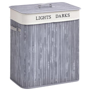 Καλάθι Πλυντηρίου HOMCOM από Μπαμπού με Καπάκι 100 L με Λαβές PU, Καλάθι Πλυντηρίου από Καμβά, Διαχωριστής Καλαθιών για Λουτρό, Υπνοδωμάτιο, Μπάνιο Γκρι
