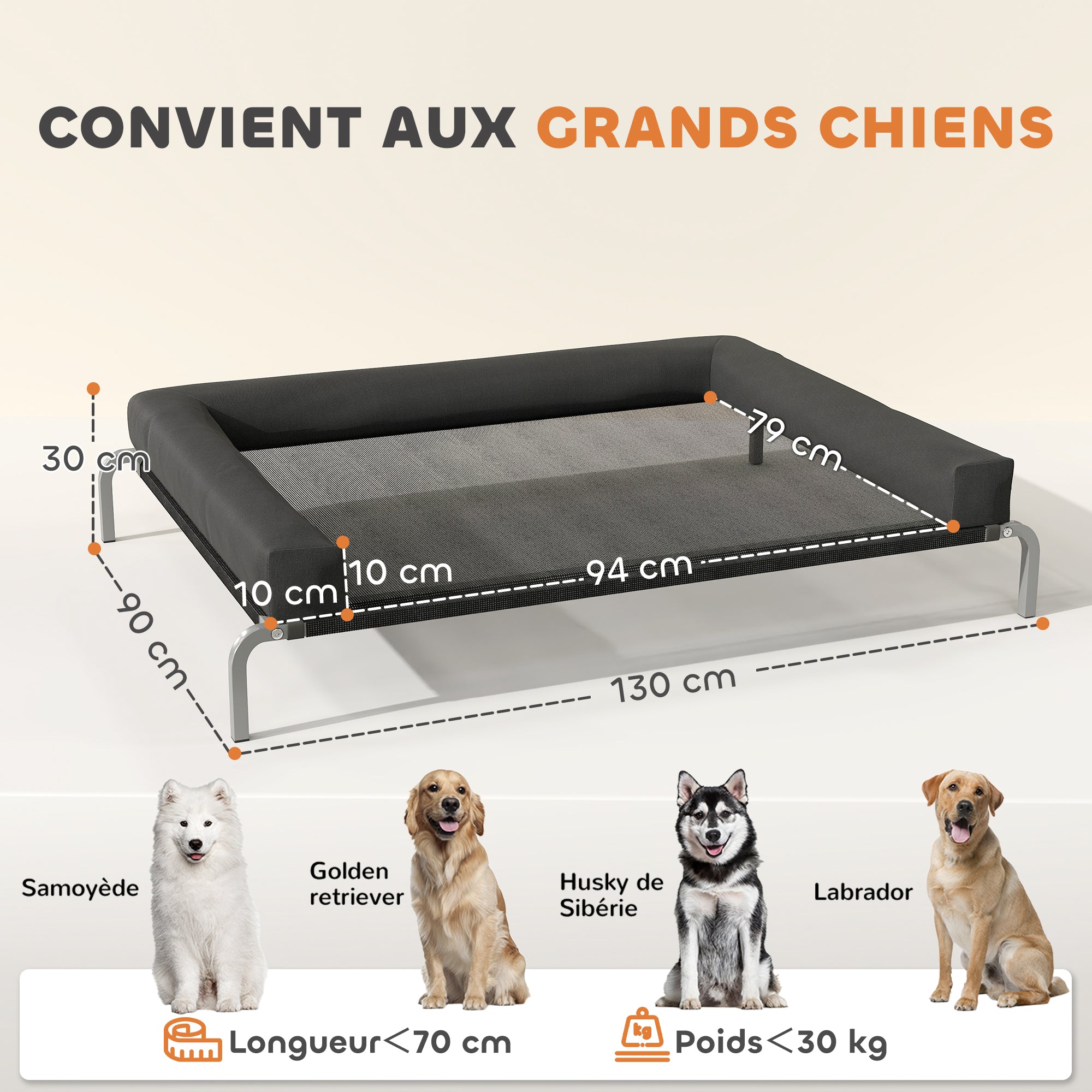 - - ΜΕΤΑΛΛΙΚΟΣ ΣΚΕΛΕΤΟΣ: Αυτό το υψωμένο κρεβάτι σκύλου διαθέτει στιβαρούς μεταλλικούς σωλήνες, προσφέροντας αυξημένη αντοχή και χωρητικότητα βάρους έως 30 κιλά, ιδανικό για μεγάλους σκύλους και γάτες