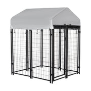 PawHut Εξωτερικό Κλουβί Σκύλου με Στέγη και Καλύμματα UV-Ανθεκτικό Κλειδώσιμο Σχέδιο Μεταλλικό Σκελετό 120 x 120 x 138cm μαύρο