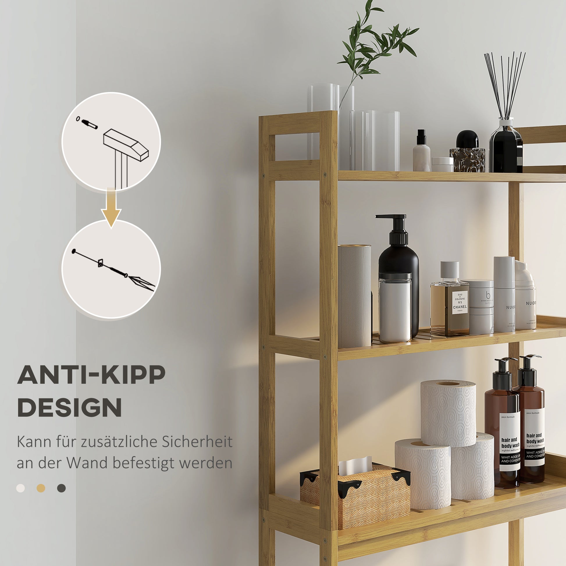Ράφι Τουαλέτας Kleankin 3-Επιπέδων Bamboo για το Μπάνιο Multifunctional WC Ράφι Αποθήκευσης για Μπάνιο, Τουαλέτα, Πλυντήριο, Φυσικό