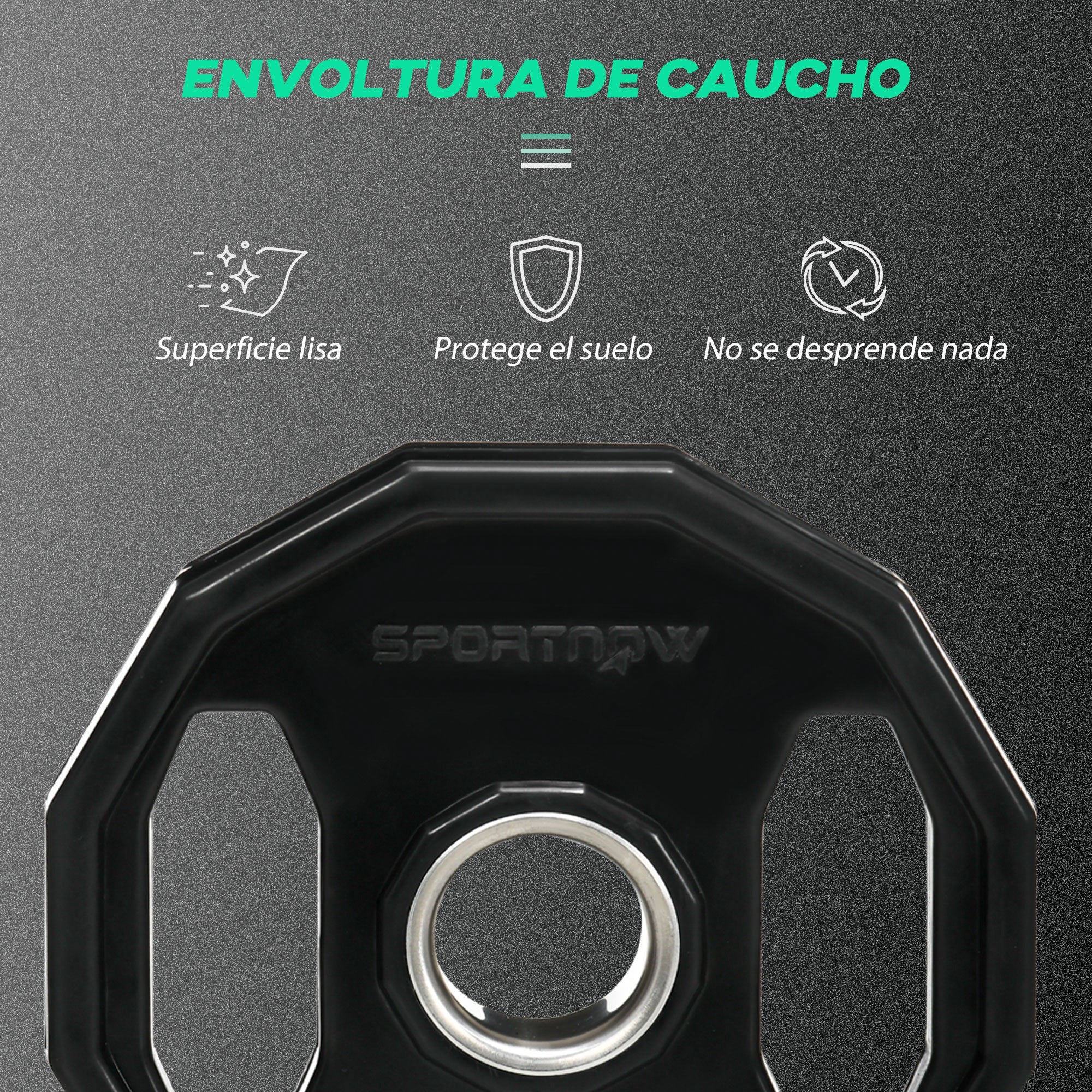 - - ΕΠΕΝΔΥΣΗ ΑΠΟ ΚΑΟΥΤΣΟΥΚ: Η επένδυση από καουτσούκ των Ολυμπιακών πλακών βάρους δεν παρέχει μόνο μεγαλύτερη αντίσταση στη διάβρωση αλλά επίσης μειώνει το θόρυβο σε περίπτωση πτώσης