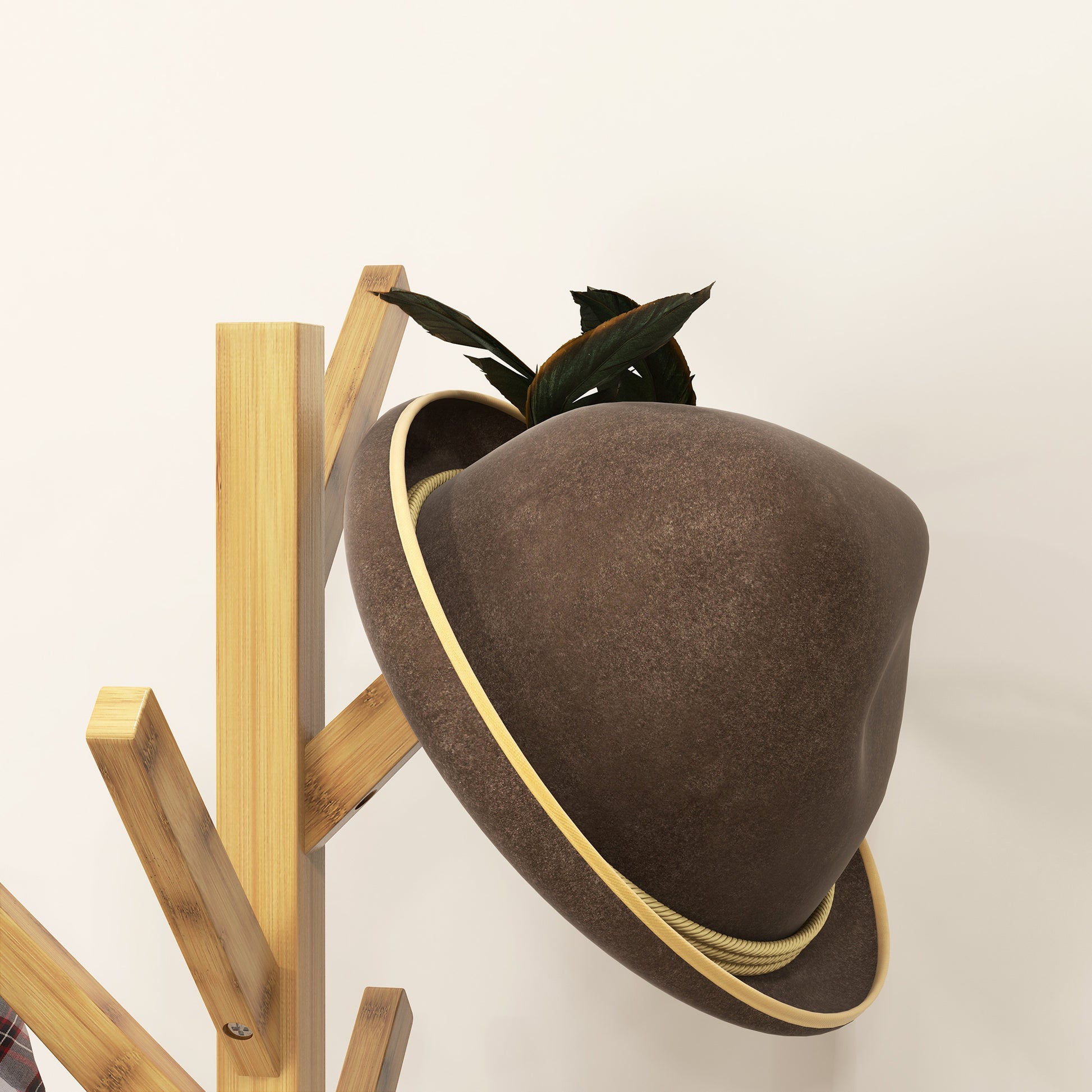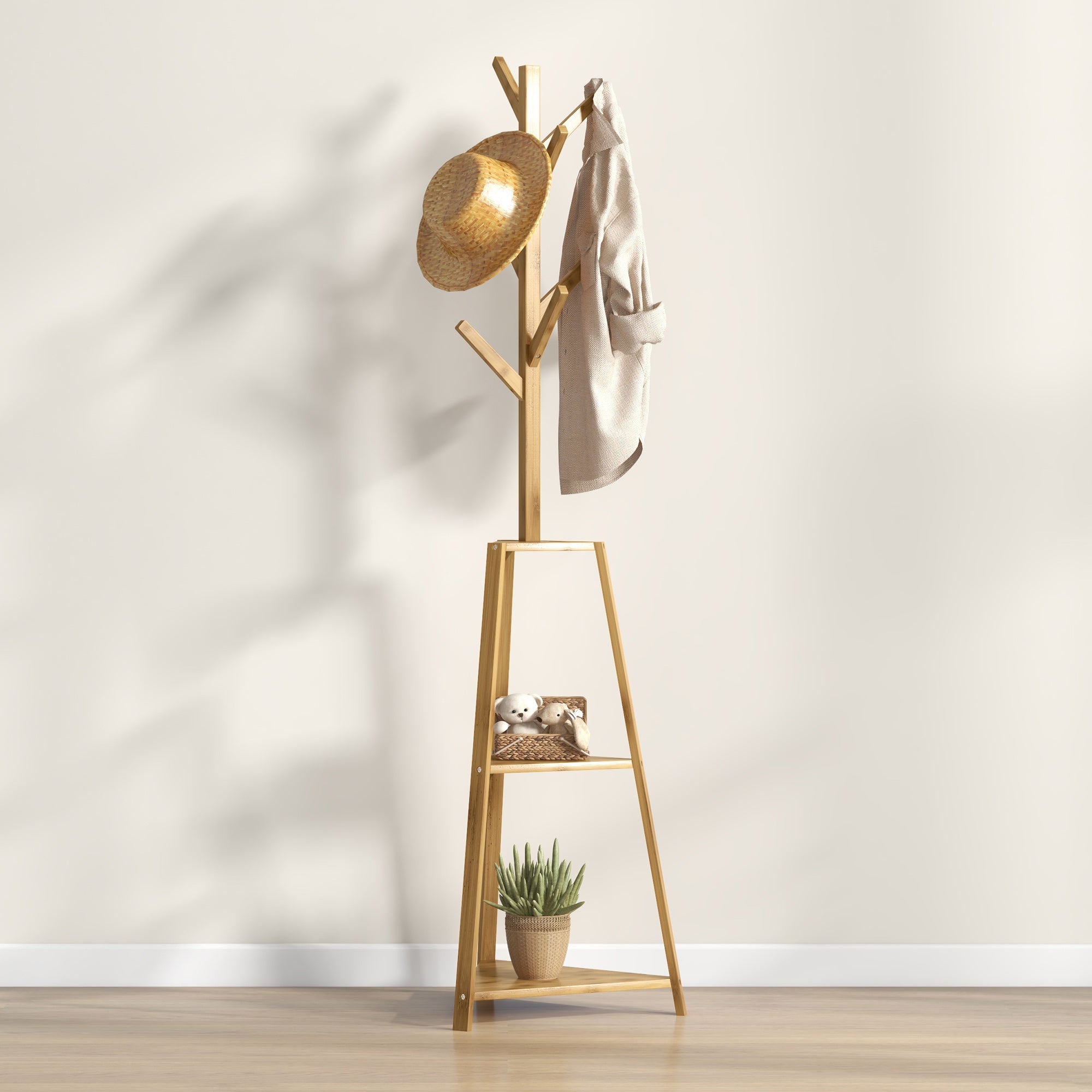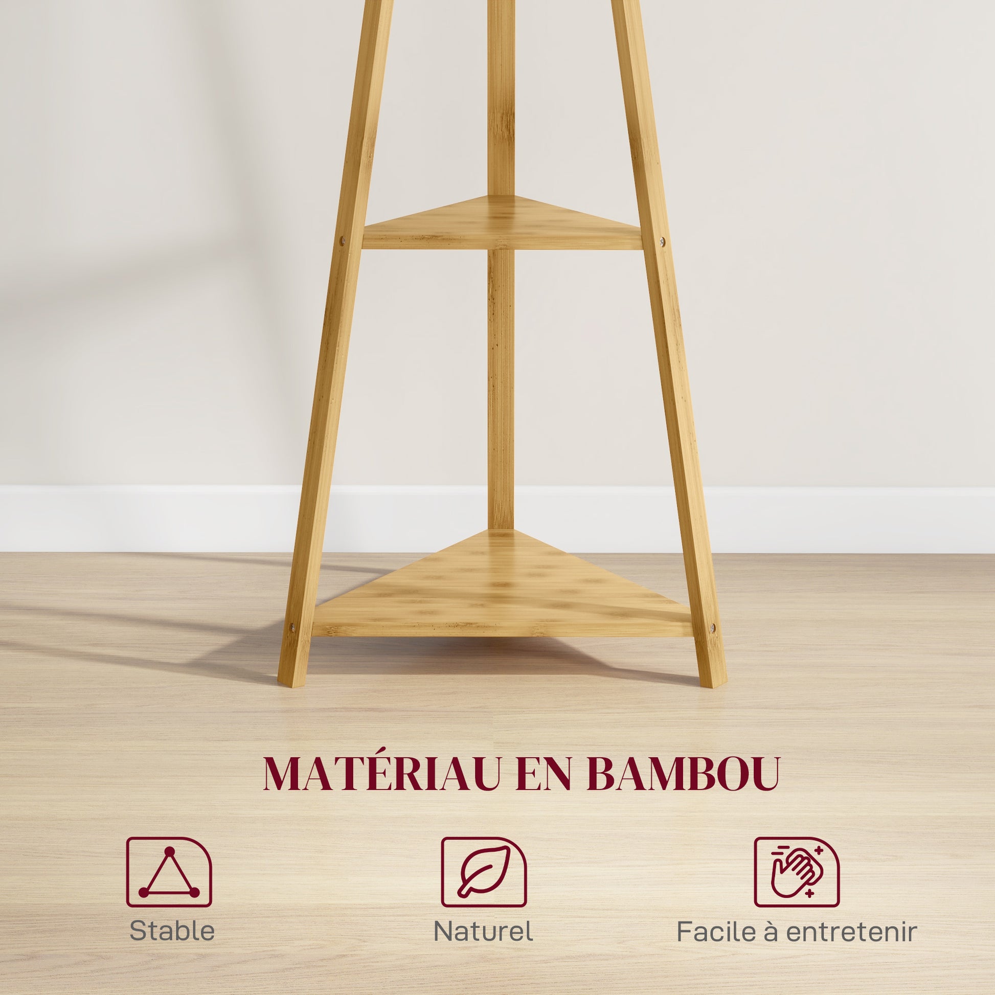 Στηρίγματα Κρεμάστρας Ρούχων HOMCOM από Μπαμπού, Καλόγερος με 8 Γάντζους, 3 Ράφια, Ντουλάπα, 46 x 46 x 175 εκ., Έπιπλο Εισόδου για Ρούχα, Καπέλα, Είσοδο, Φυσικό