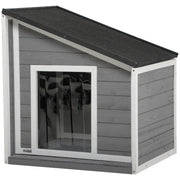 Ξύλινο Σπίτι Σκύλου PawHut, Σπίτι Σκύλου με Ανοιχτή Οροφή από Άσφαλτο και Κουρτίνα Πόρτας, Εξωτερικό Σπίτι Σκύλου, Μικρό Σπίτι για Μικρούς Σκύλους, Εξωτερικός Χώρος, Ανθεκτικό σε Καιρικές Συνθήκες, Γκρι, 71 x 58 x 53/77 εκ.