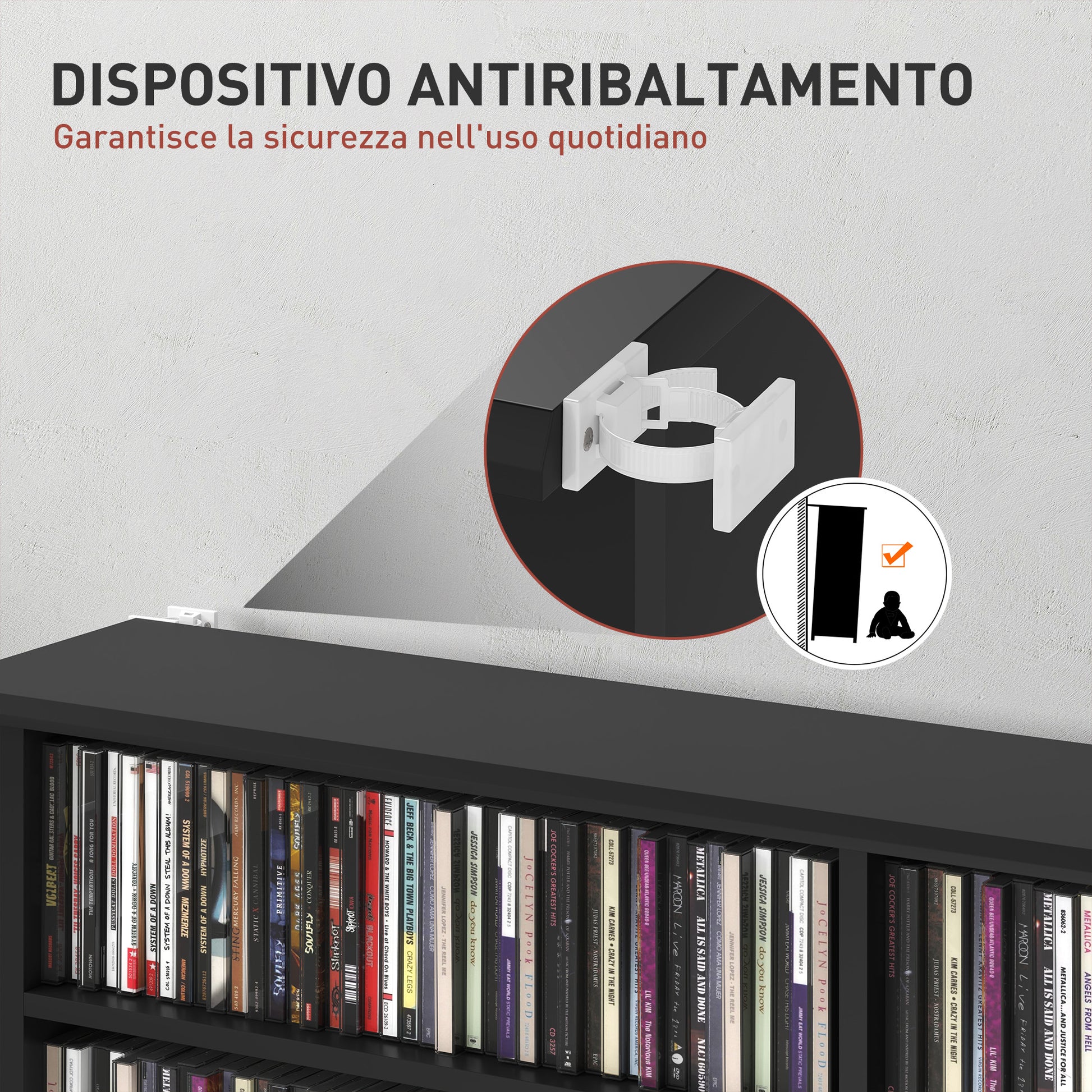 - - STABLE AND SAFE STRUCTURE: Built with high-quality particleboard and equipped with an anti-toppling strap, this CD holder shelf ensures the right stability and safety, protecting your precious collection