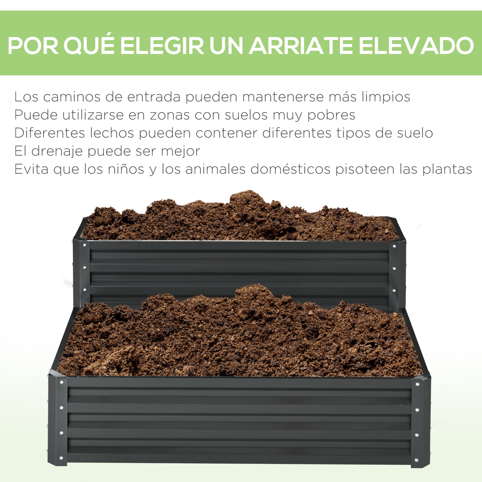 2-Tier Urban Garden Planter Outdoor Steel Planting Box with Stair Design for Growing Medicinal Plants Herbs Flowers for Terrace Garden 120x101x58 cm Dark Gray