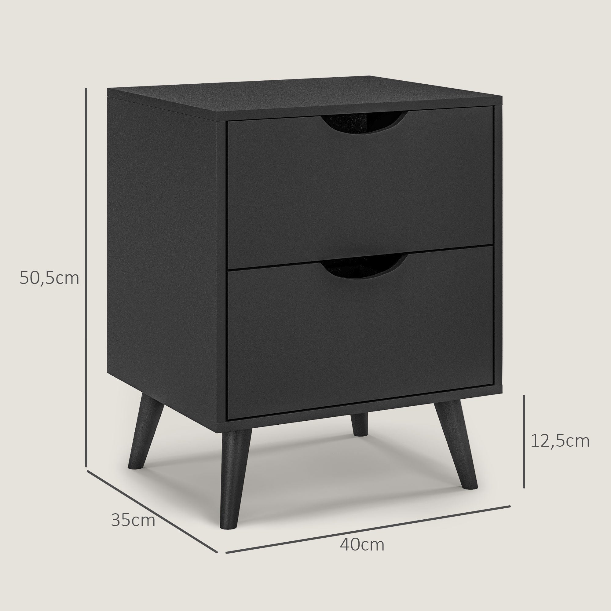 Bedside Table Nightstand with 2 Drawers, Scandinavian Style for Bedroom, Living Room, 40 x 35 x 50.5 cm, Black