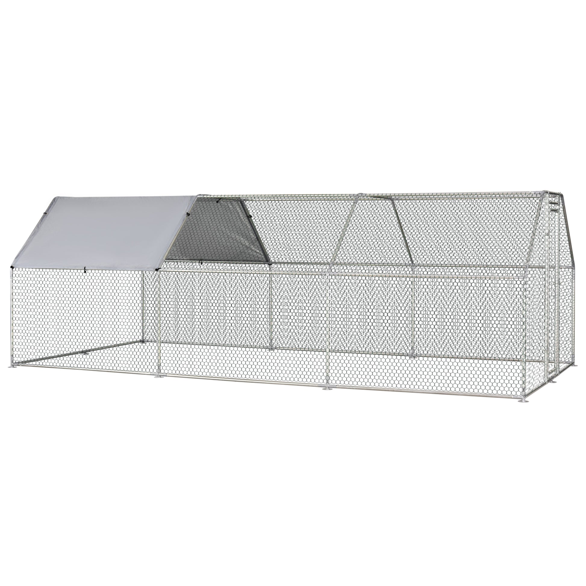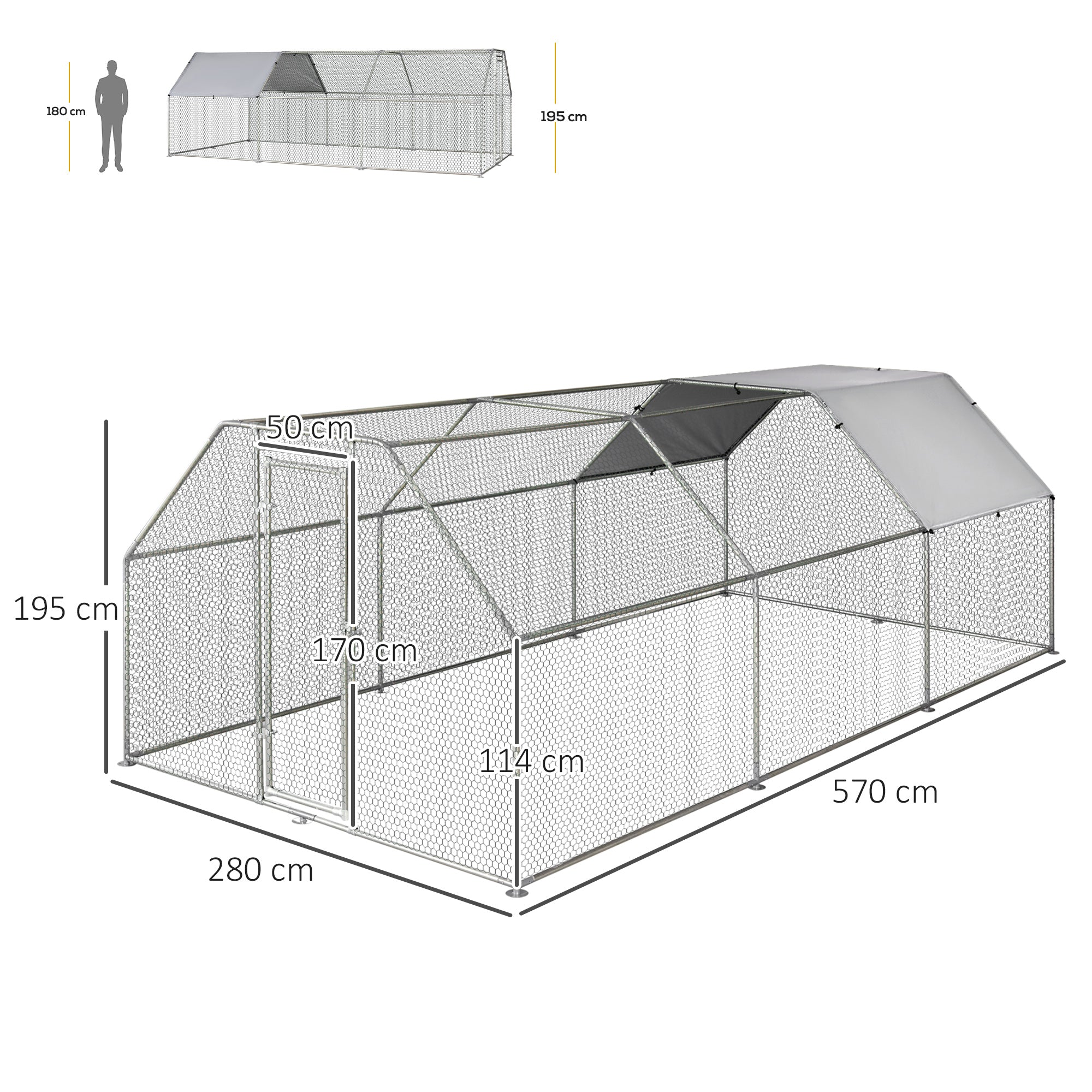 Chicken Coop Cage in Galvanized Metal Waterproof, Henhouse with Door and Oxford Cover, 280x570x195cm