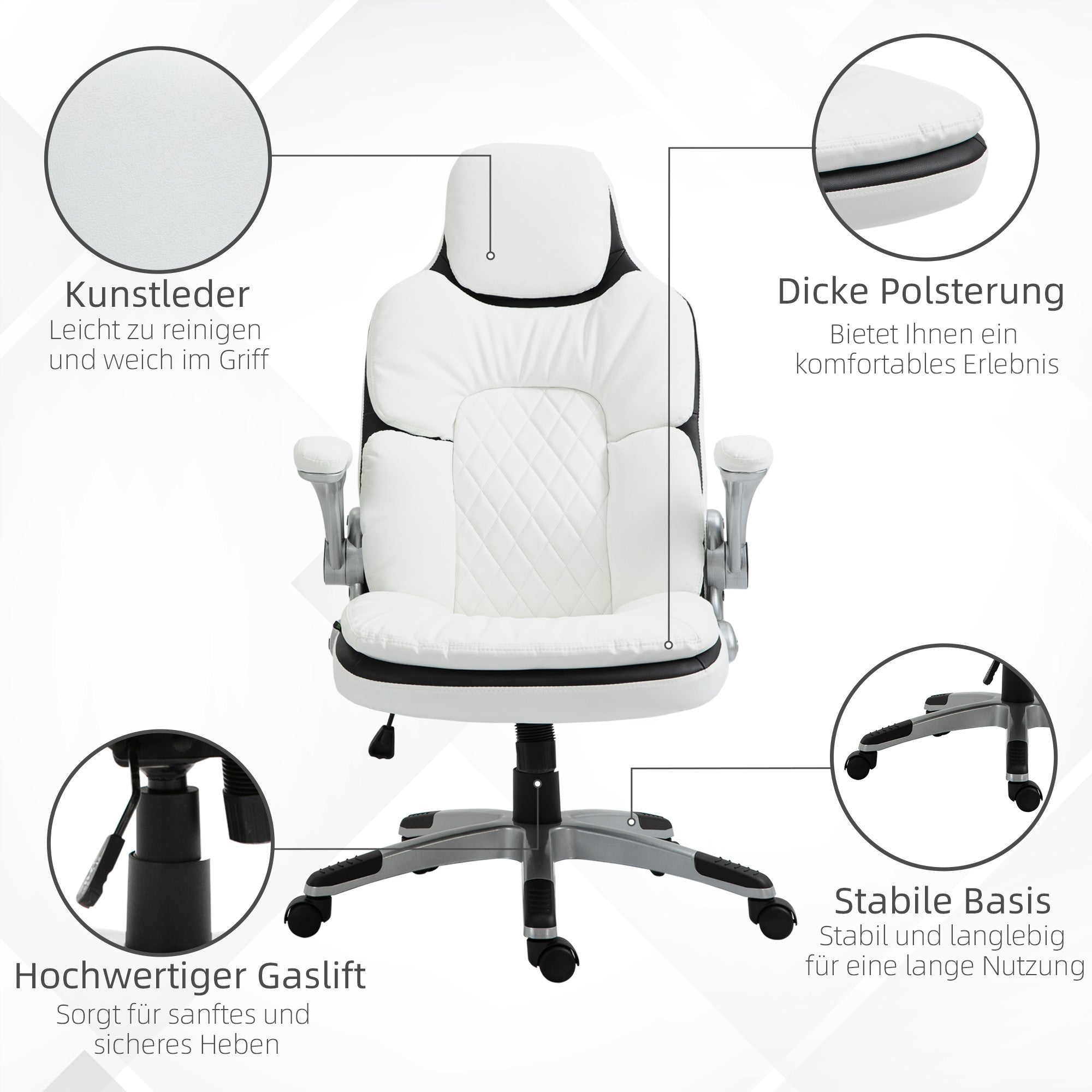 - - Flexibly Adjustable: With the easily accessible pneumatic lever, you can adjust the seat height and find the most comfortable position. The computer chair's armrest can be raised up for easy storage under the table.