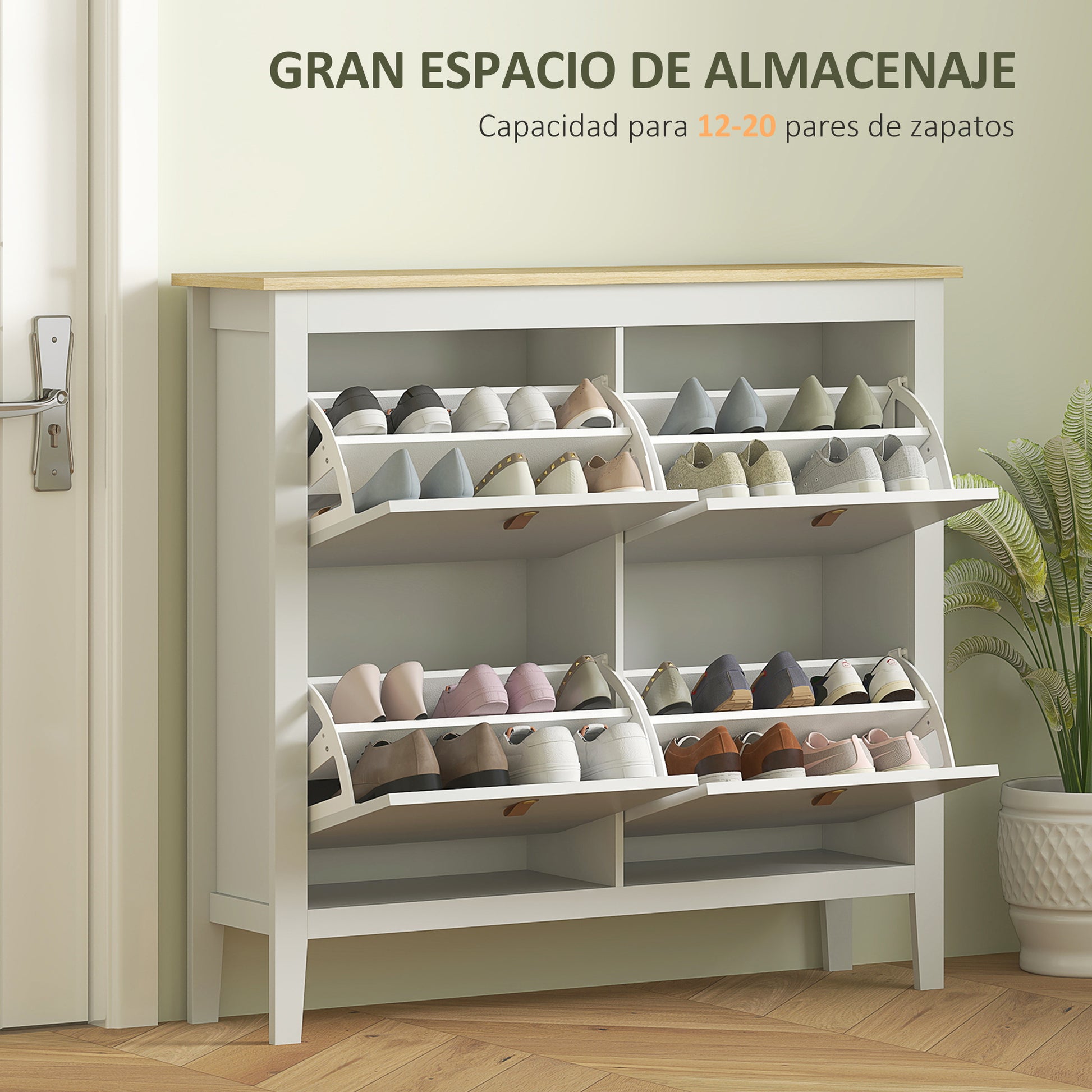 - - WITH 4 FLIP DRAWERS: Organize your shoes in a practical and elegant way with this narrow shoe cabinet. With 4 flip compartments, each with two levels, you can store up to 20 pairs. The elevated base of 13 cm facilitates the movement of a cleaning robot