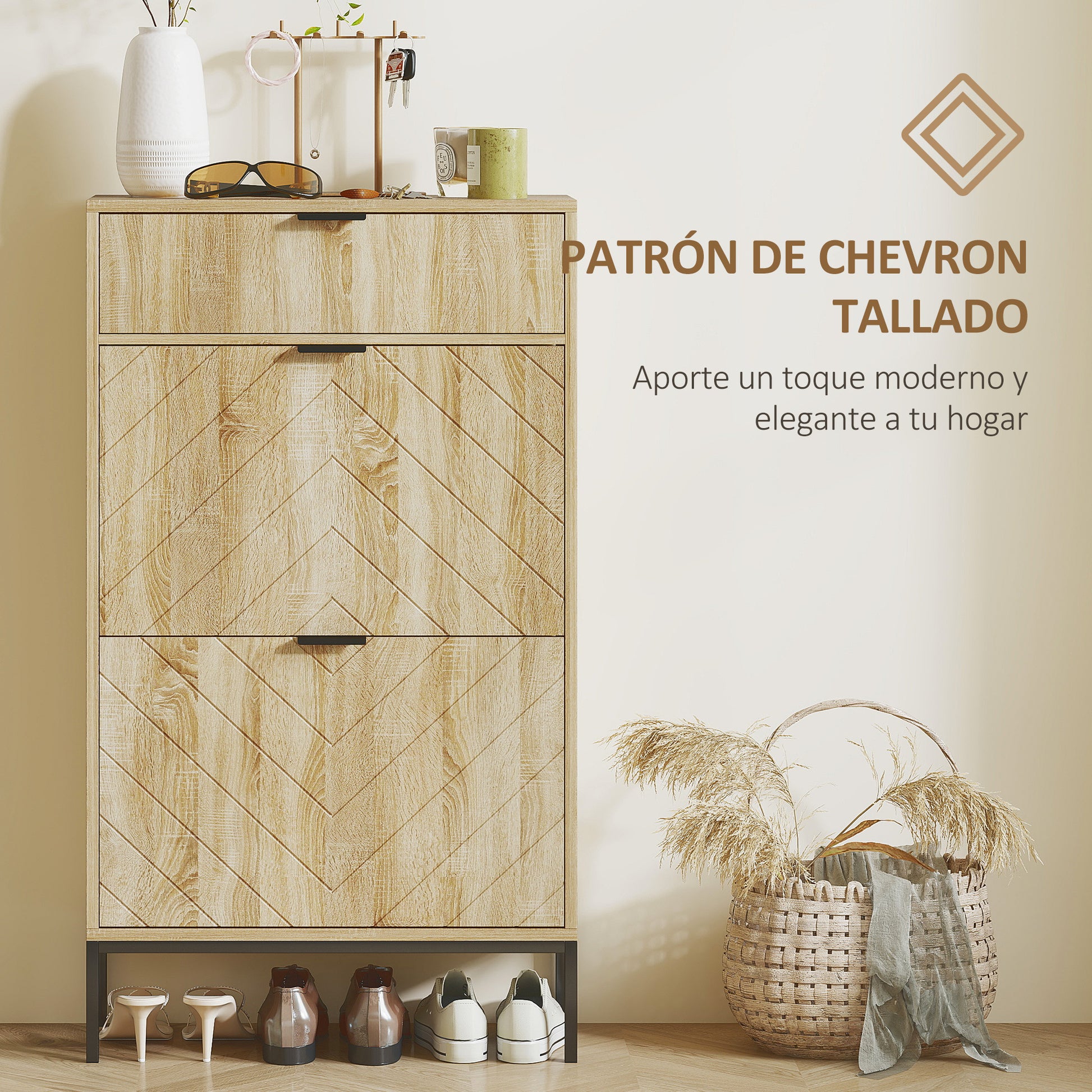 - - STABLE AND SAFE: Made of high-quality melamine and reinforced steel base. This shoe cabinet includes an anti-tipping system for added safety and a solid structure that ensures durability