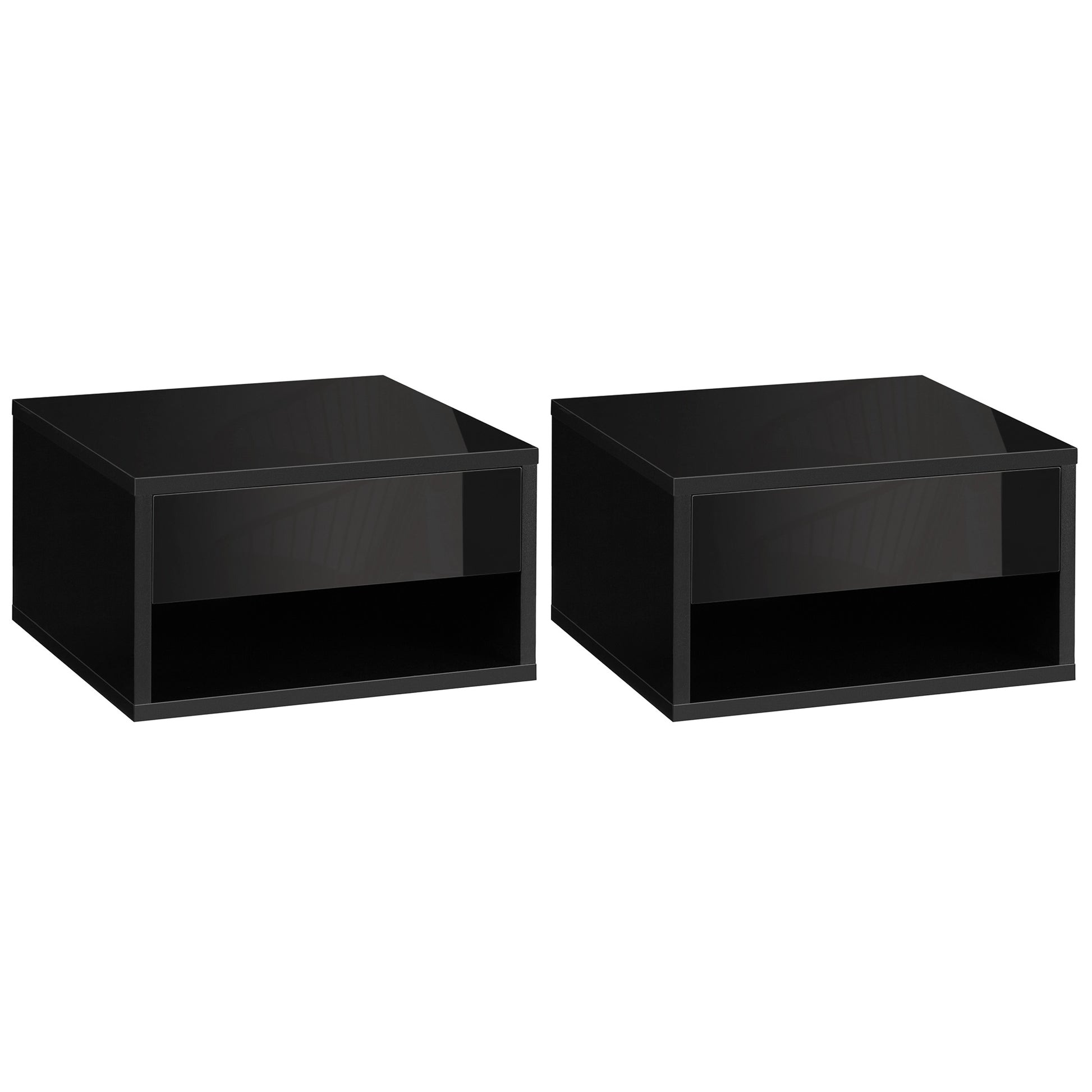 Set of 2 wall-mounted bedside tables nightstand - sliding drawer, niche, tabletop - wood dim. 37L x 32W x 21H cm black