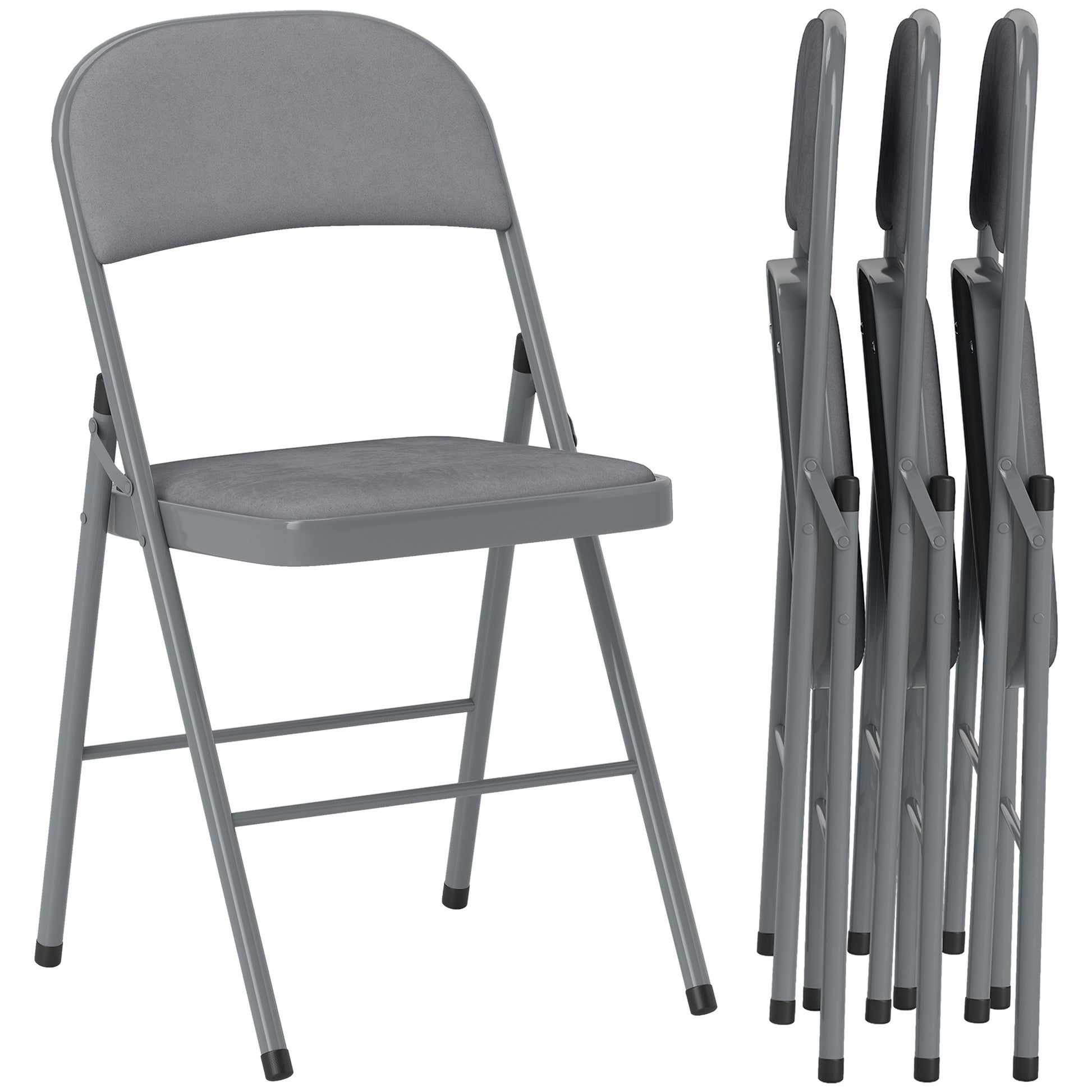 Set of 4 folding dining chairs, portable indoor chairs with velvet padded seats and backs, steel frame, holds up to 120kg, light grey