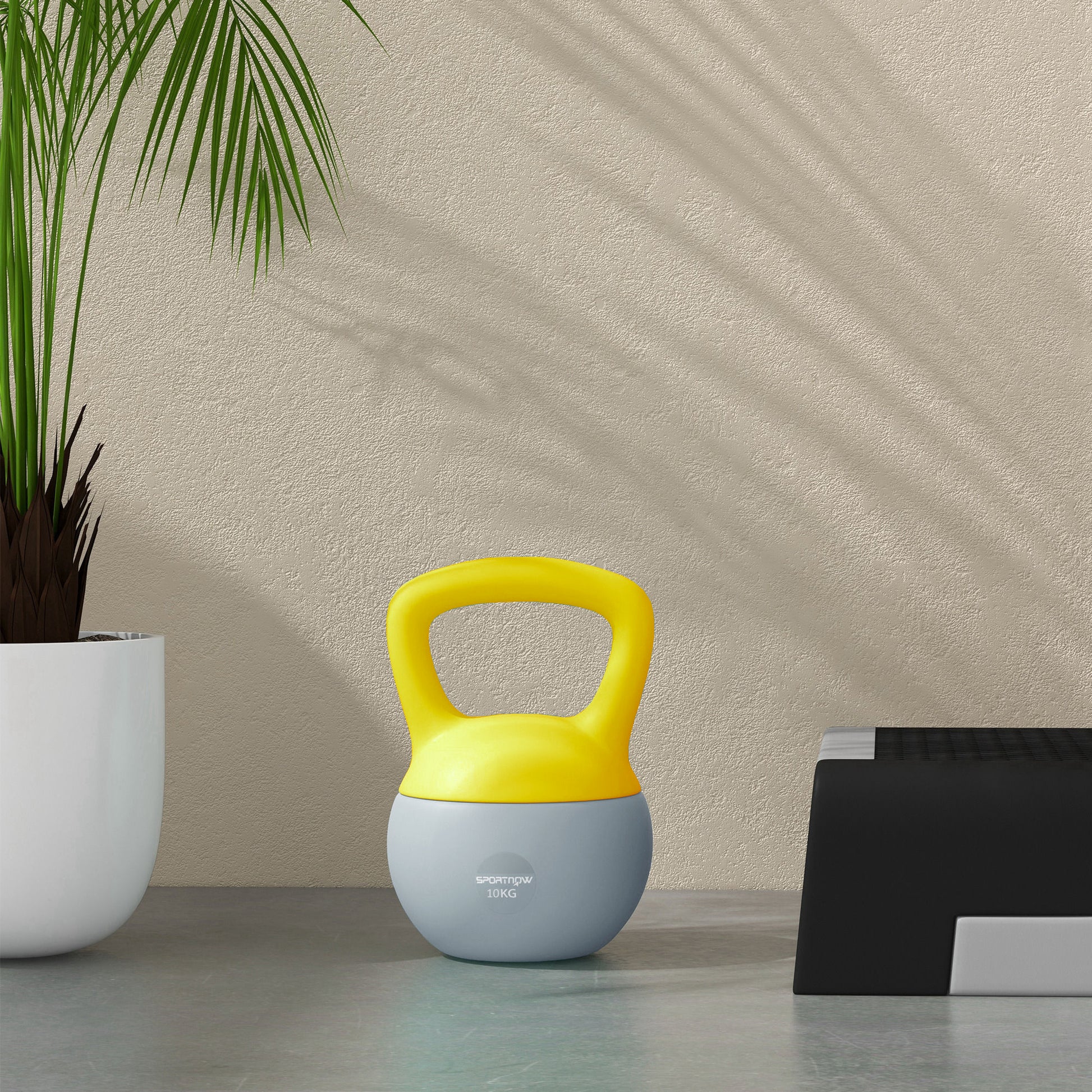 SPORTNOW 10kg Kettlebell Dumbbell with Non-Slip Handle for Fitness Muscle Cardio, Gray and Yellow