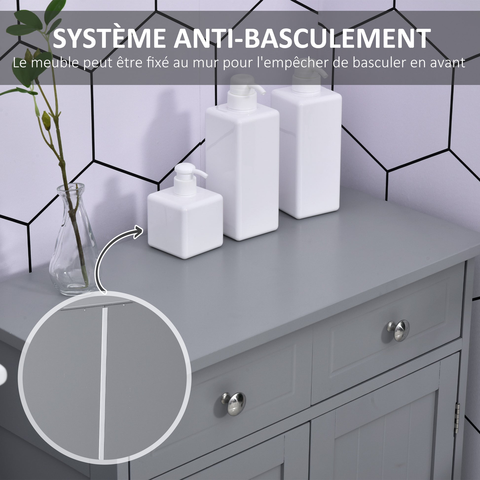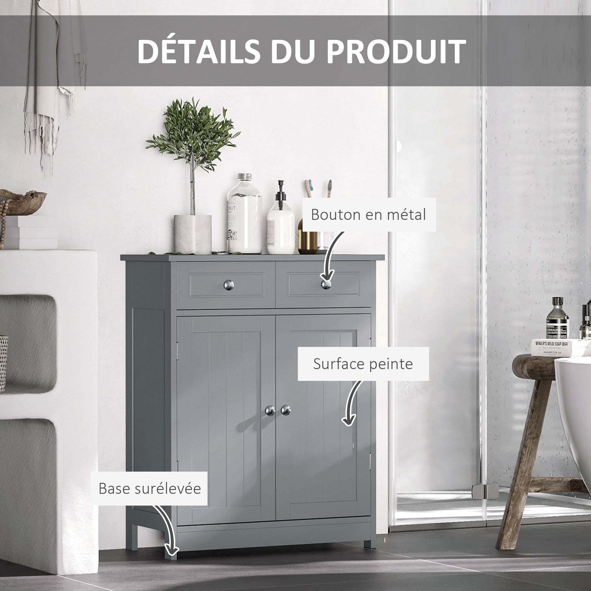 Storage Cabinet, Bathroom Cabinet, Cupboard with 2 Doors 2 Drawers - 60 x 30 x 75 cm - Gray