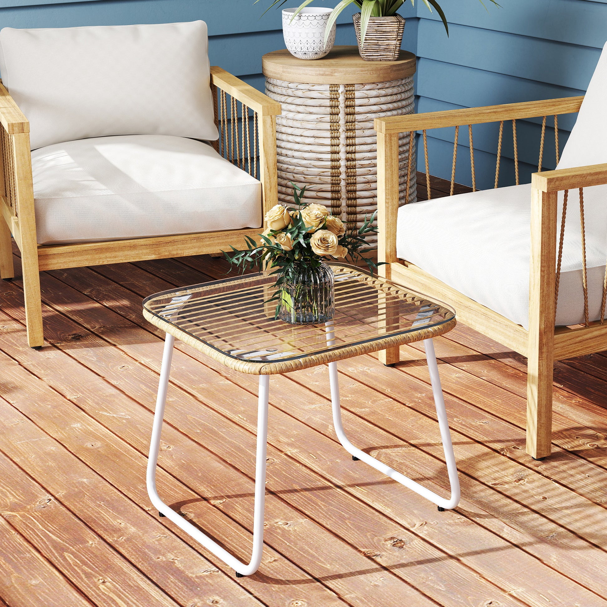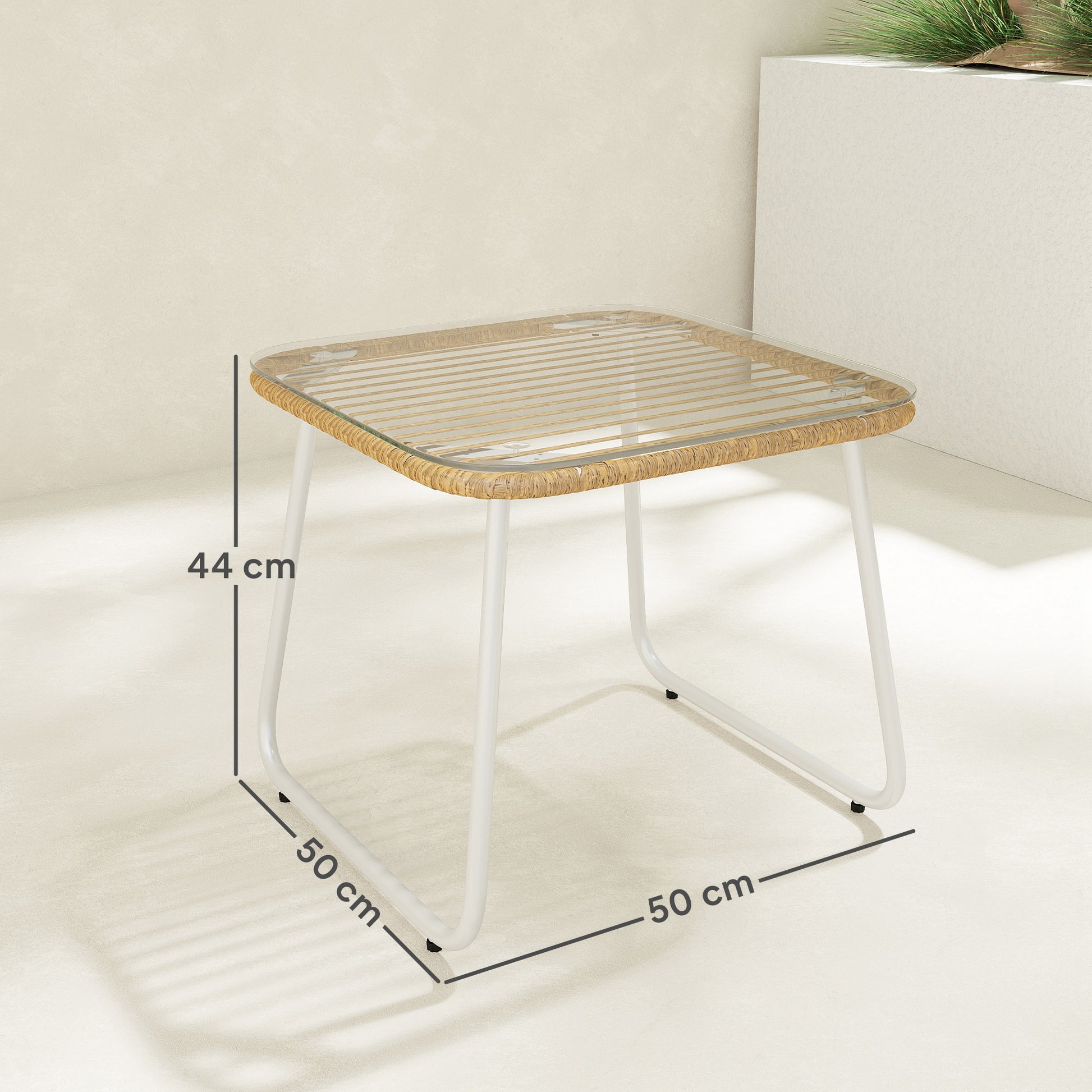- - TEMPERED GLASS TOP: This outdoor garden side table has a 5 mm thick tempered glass top, secured with suction cups to the base, ensuring greater stability and safety
