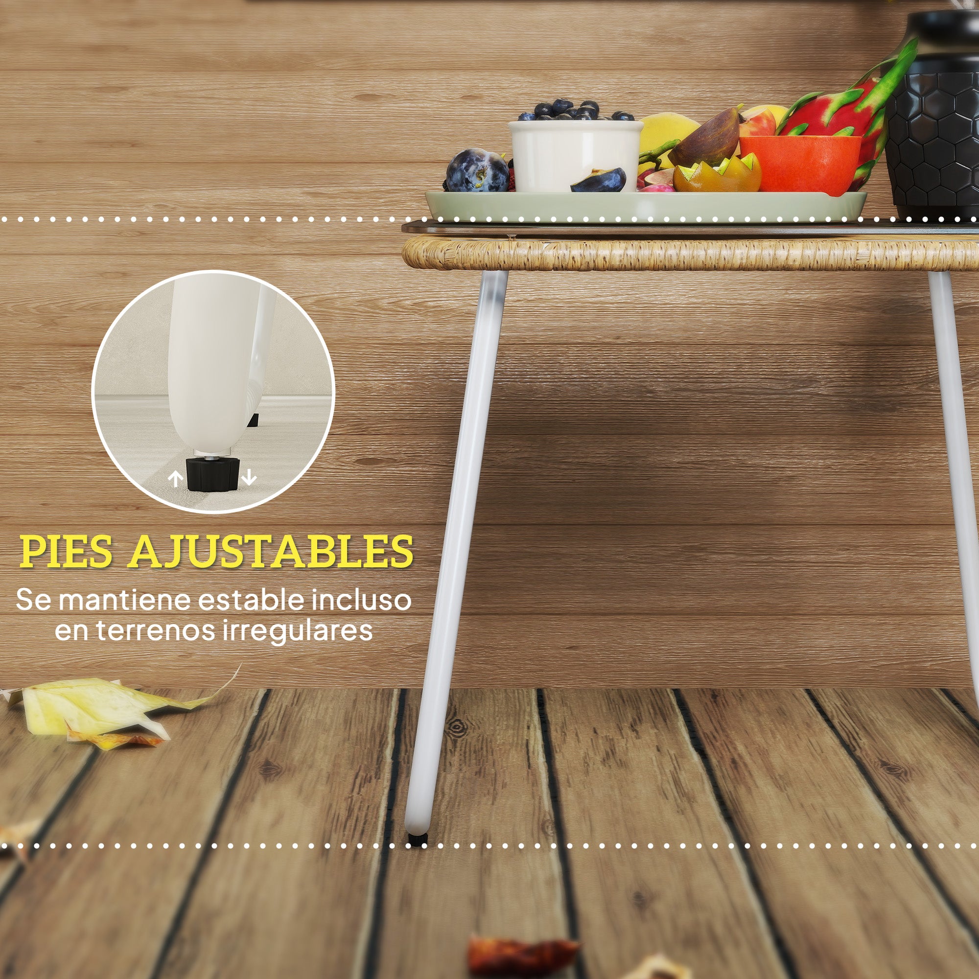 - - ADJUSTABLE LEGS: Equipped with adjustable height legs, this rattan terrace table ensures total stability on uneven outdoor terrain, allowing you to comfortably enjoy your outdoor space