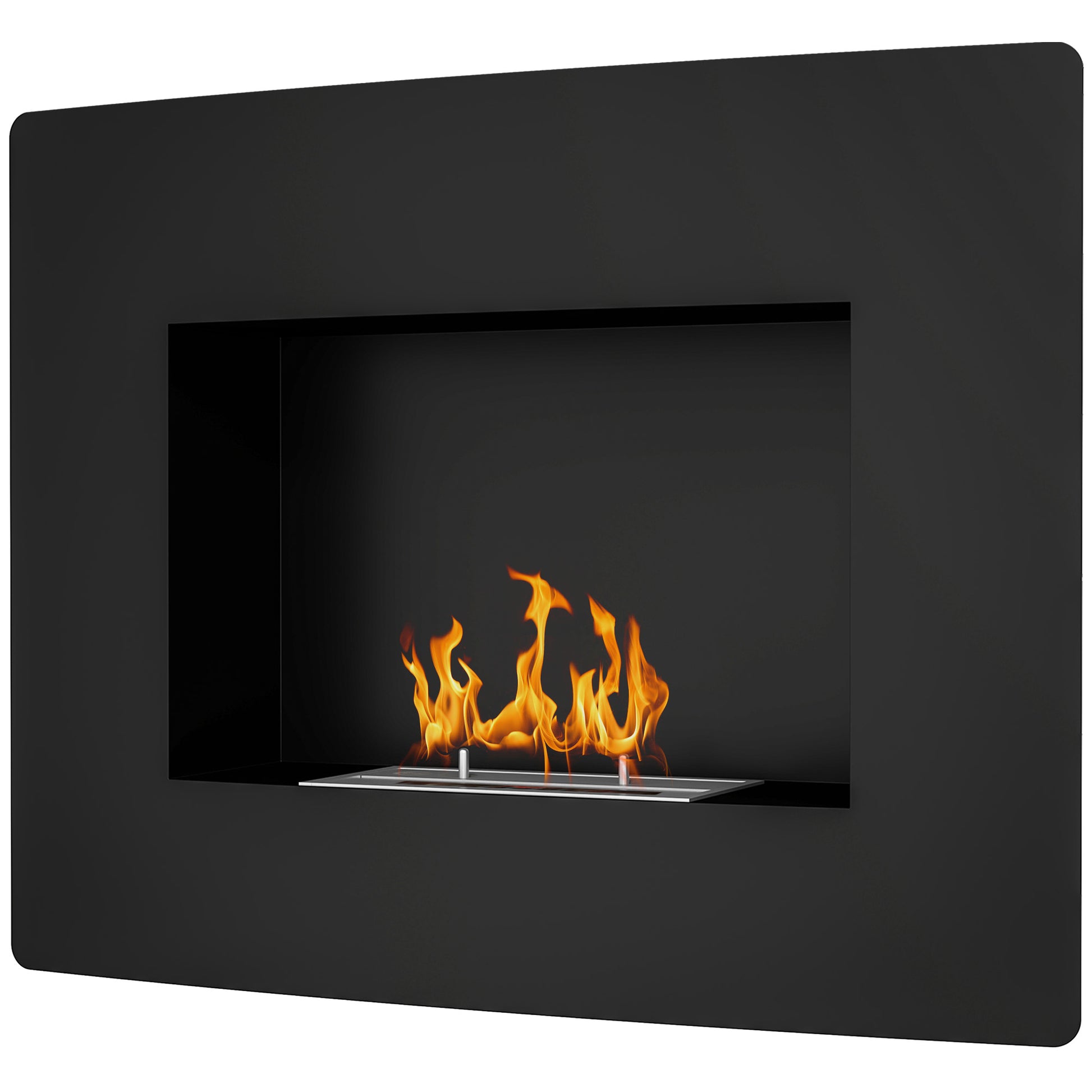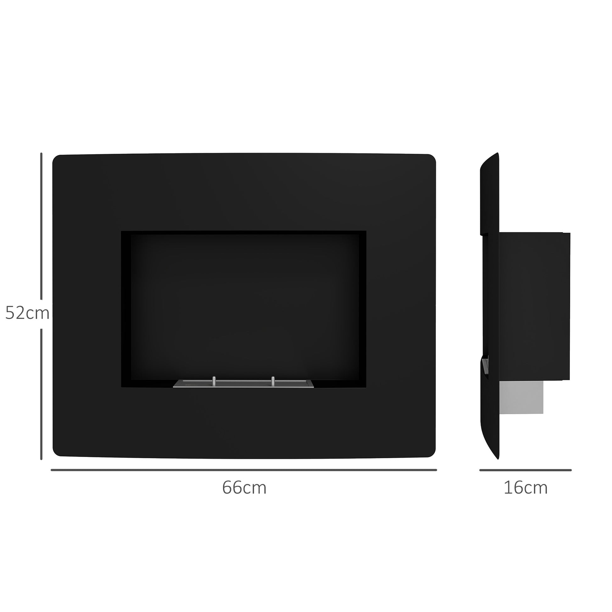 Wall-Mounted Bioethanol Fireplace Curved Bioethanol Stove with 0.9L Stainless Steel Flame Extinguisher Combustion Time 3.3H for Indoors 15-20 m? 66x16x52 cm Black