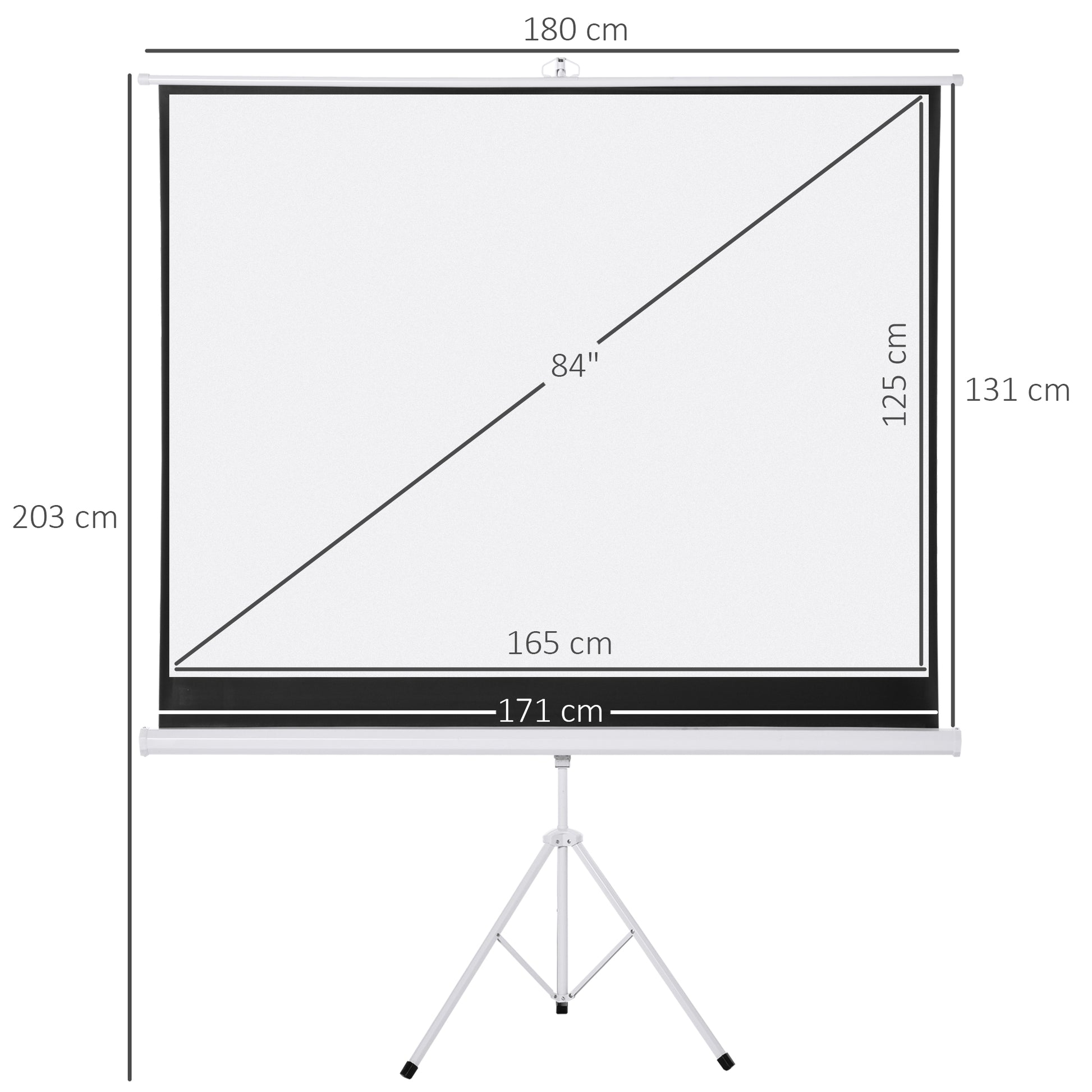 - - OVERALL DIMENSIONS: Canvas size: 171x131 cm (84 inches) (LxH). White area dimensions (excluding black border): 165x125 cm (LxH). Aspect ratio: 4:3. Assembly required