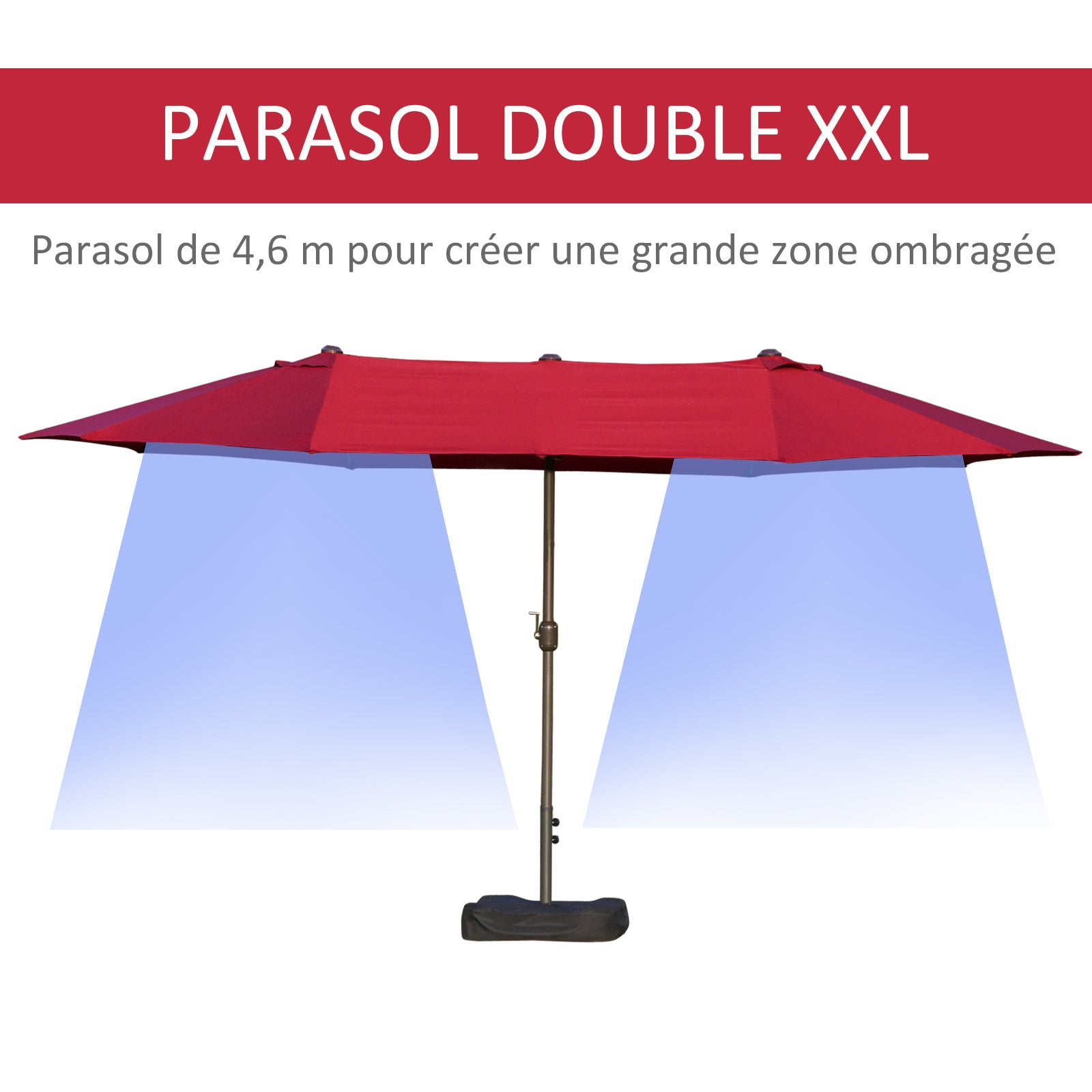 Outdoor Garden Umbrella Double Rectangular Parasol 4.6L x 2.7W x 2.4H m with crank opening-closing, sandbags, and base included, for balcony, pool, Bordeaux