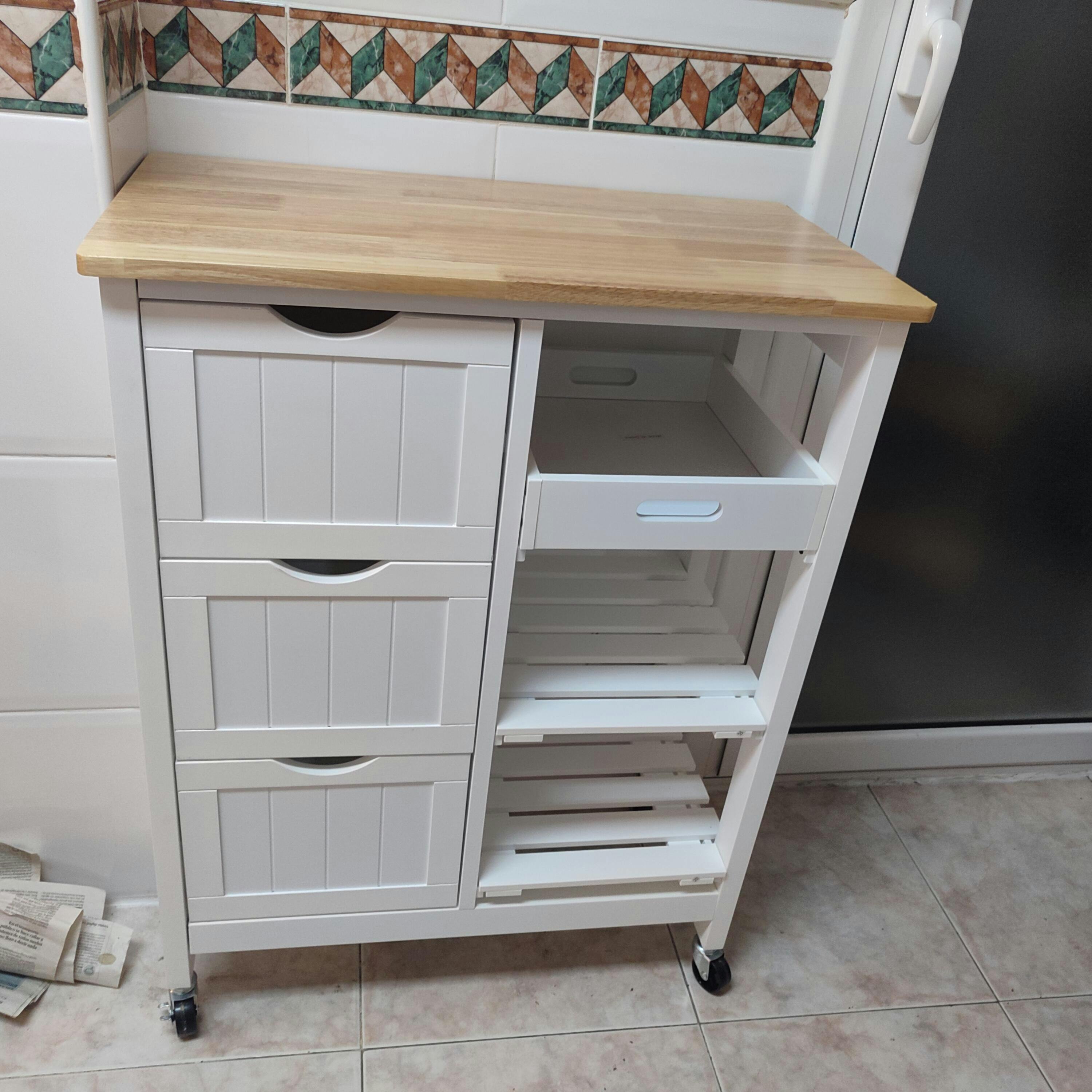 - - STURDY STRUCTURE: Made of MDF, this utility cart is sturdy and ideal for prolonged use. The slatted design shelves allow air circulation, making it an ideal space for storing fruits, vegetables, among others