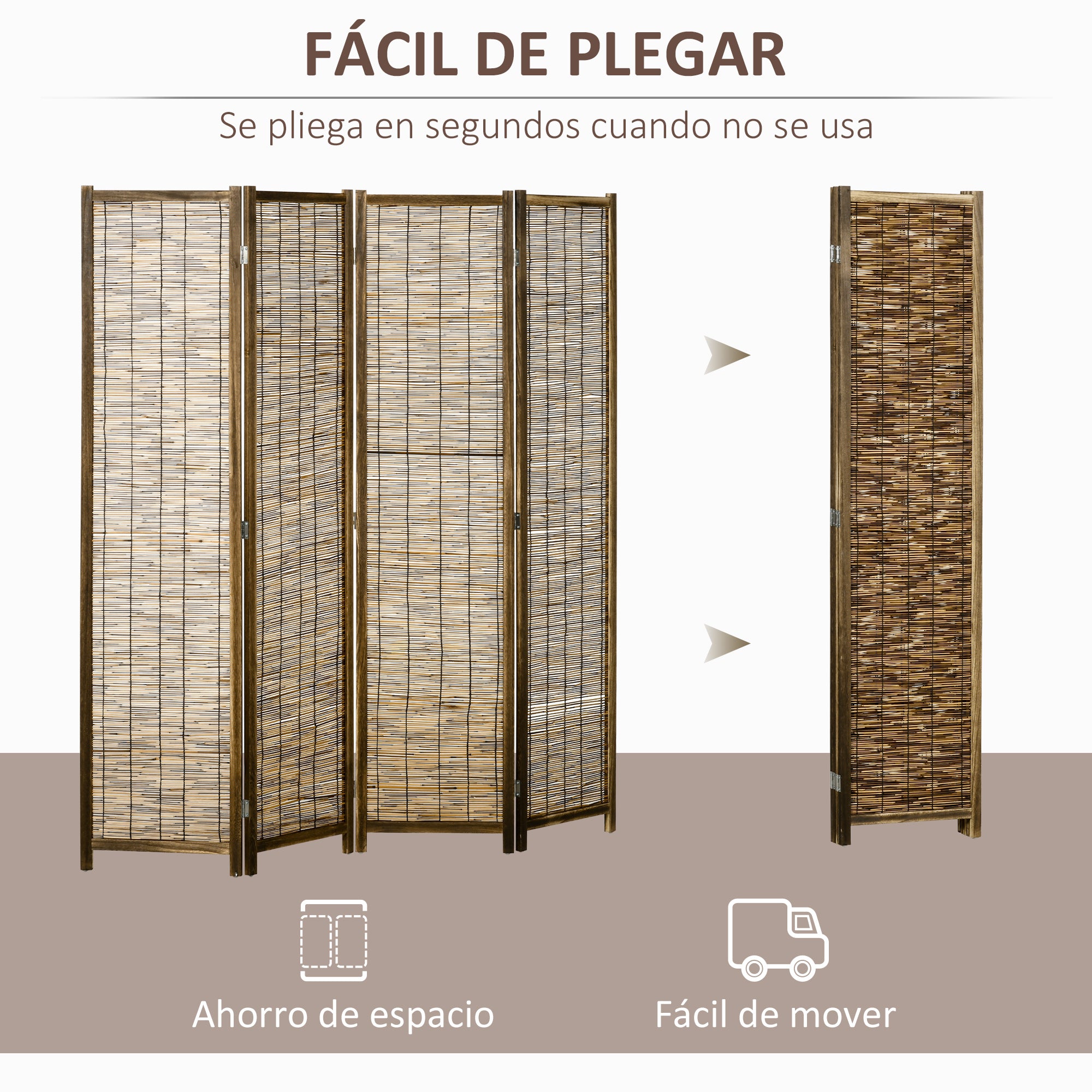4-Panel Folding Room Divider 63"L x 0.7"W x 67"H Rustic Style Wooden and Reed Room Separator for Office Bedroom Living Room Natural