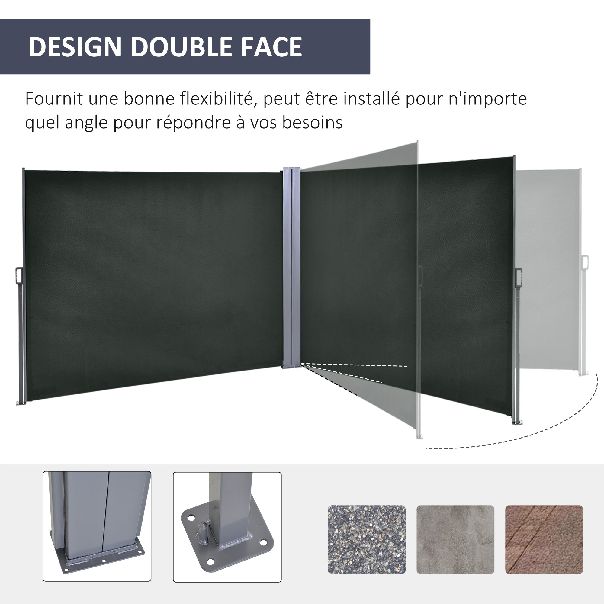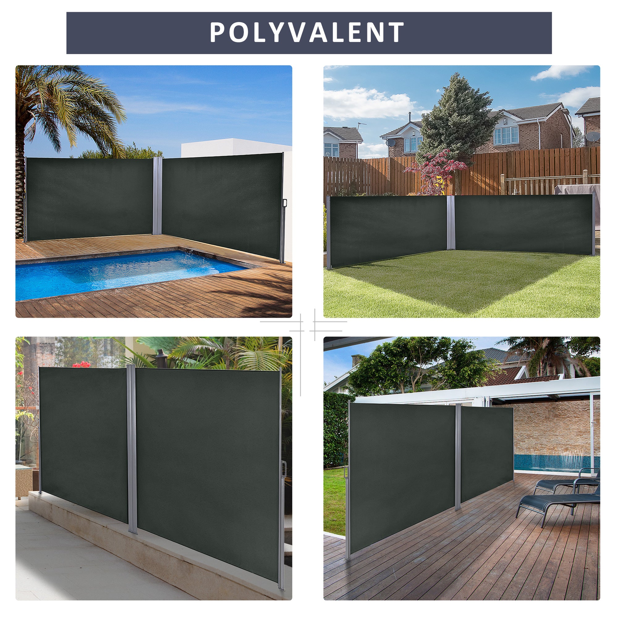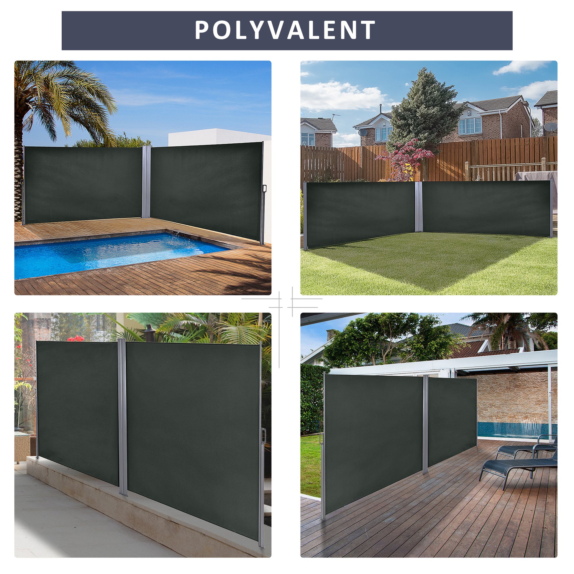 Double Side Awning Privacy Screen Retractable Windbreak 6L x 1.60H m High-Density 180 g/m? Anti-UV Polyester Gray