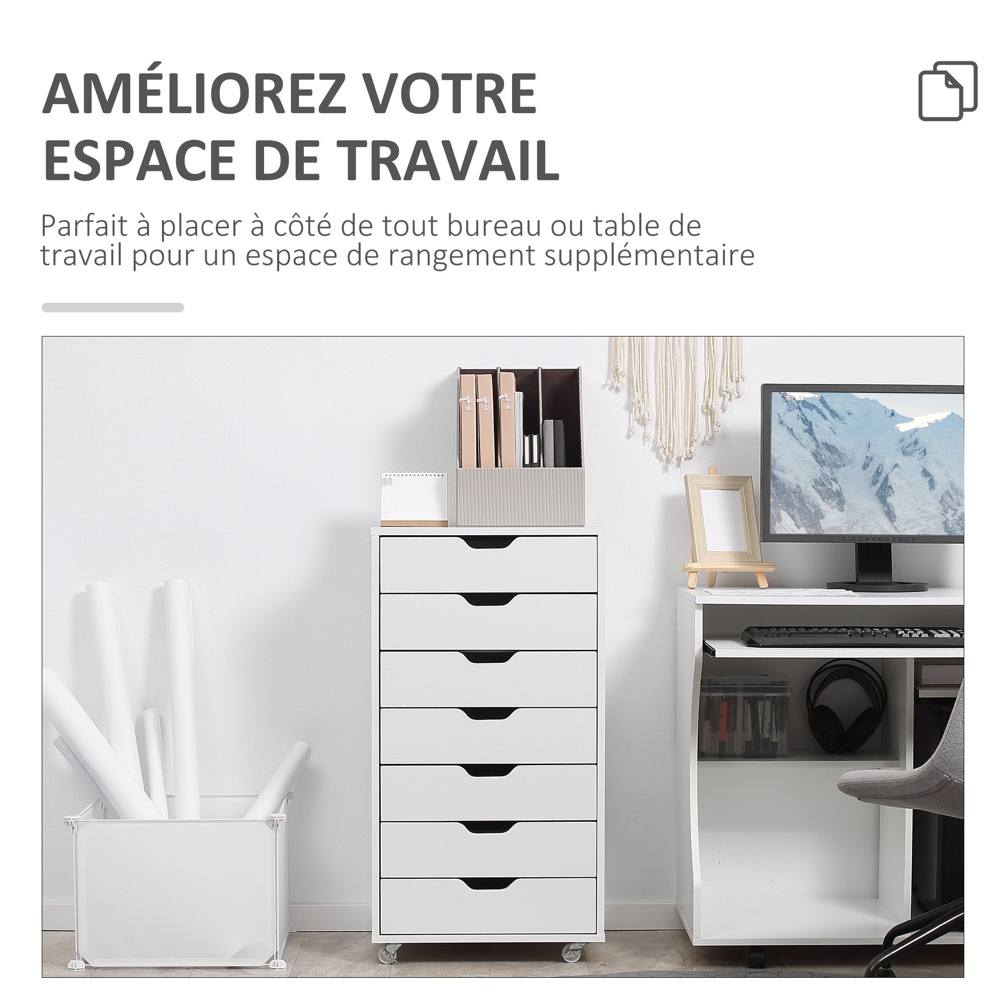 Optimize organization with the HOMCOM mobile office cabinet: seven drawers, easy moving with wheels, stability with brakes, easy opening with recessed handles. Enhanced safety with anti-tipping straps.