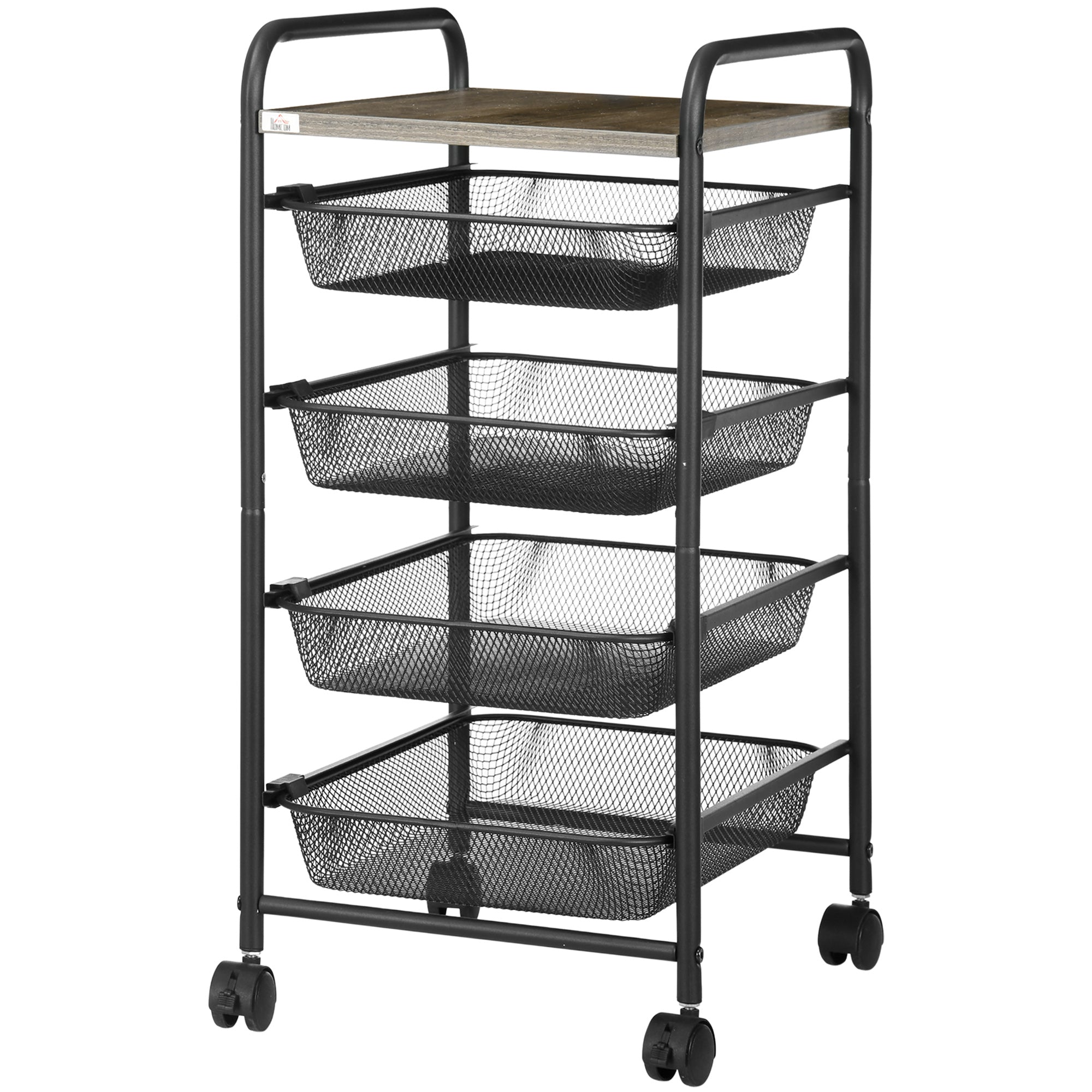 Cart, Kitchen Cart with 4 Baskets, Storage Rack with Wheels, Household Shelf, Serving Cart for Bedroom, Living Room, Steel, Black, 41.5 x 31 x 66 cm