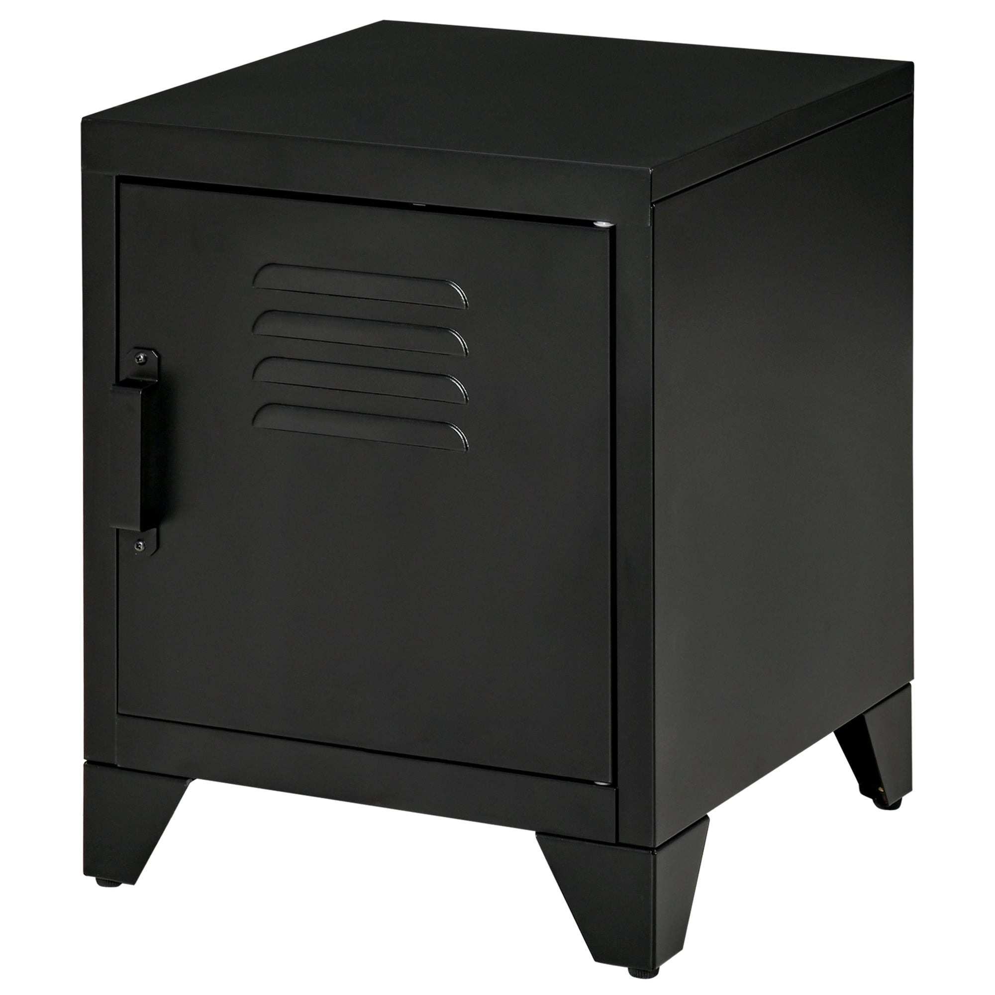 Nightstand, Side Table with Adjustable Shelf, Door, Bedside Table for Bedroom, Living Room, Metal, Black, 50 x 40 x 47.5 cm
