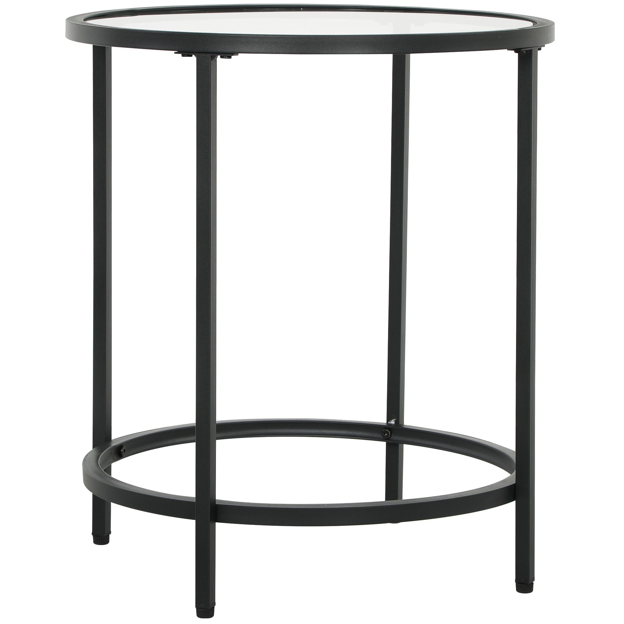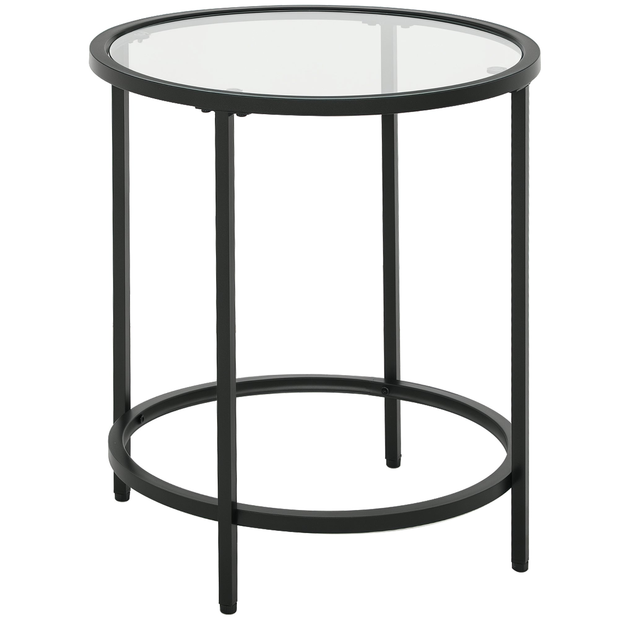 Side Table Round Coffee Table with Glass Tabletop, Metal Frame, End Table, Nightstand for Living Room, Bedroom, Black, ?48 x 54.7 cm