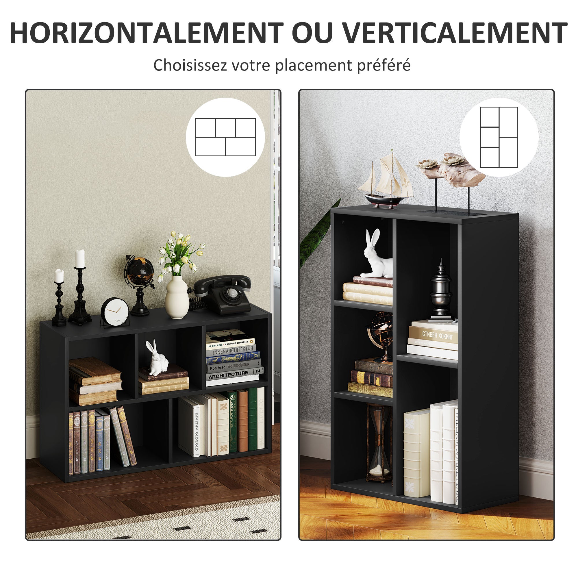 Bookshelf, 2-Tier Storage Shelf with 5 Compartments, for Living Room, Bedroom, Office, 50 x 24 x 80 cm, Black