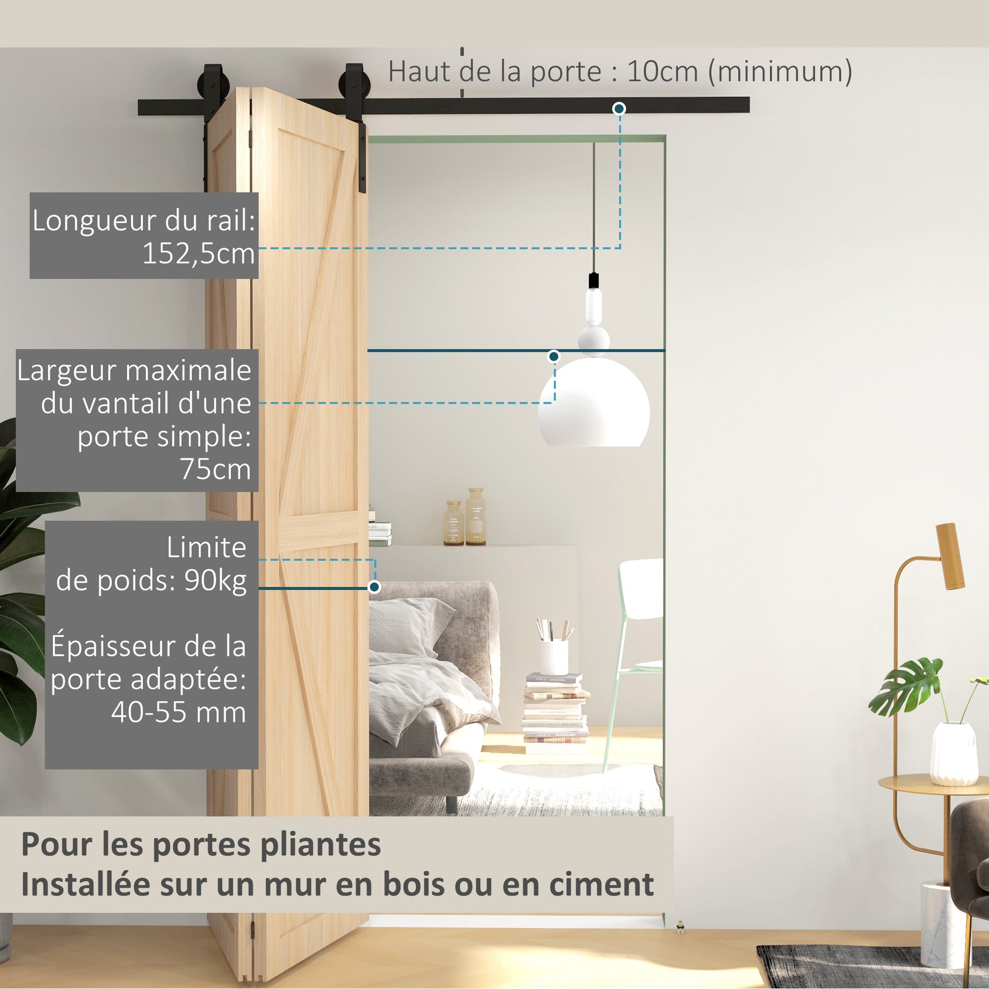 - - PACKAGE CONTENTS: Complete kit for sliding barn door including 152.5 cm rail, J rollers, rotary axis, door hinges, and all necessary hardware, as shown in the photos. DOOR NOT INCLUDED. Suitable for door panels with a thickness of 40-55 mm.